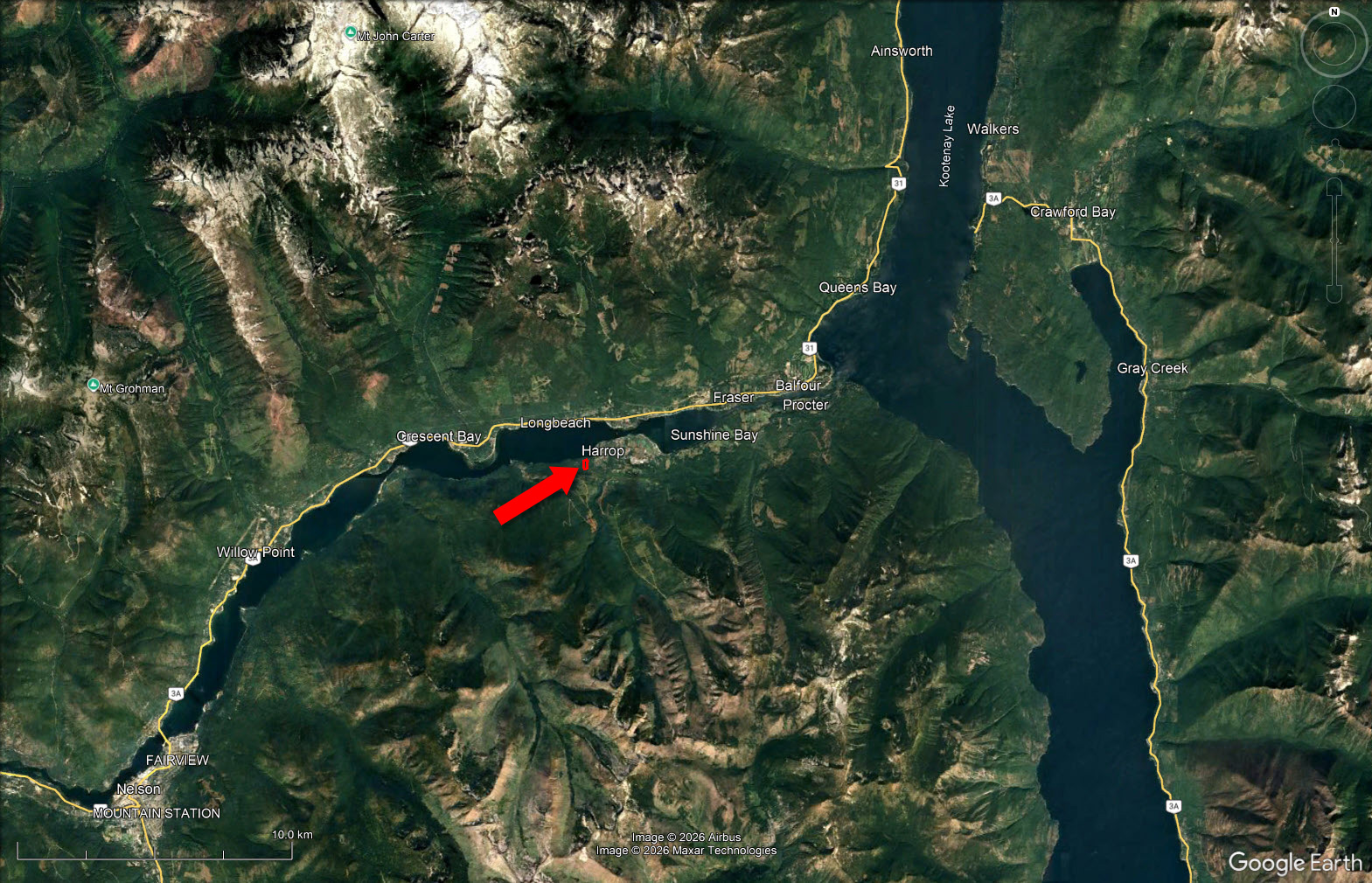 The Harrop-Procter area sits on the south shore of Kootenay Lake in British Columbia’s West Kootenay region—roughly halfway between the towns of Nelson and Kaslo. This part of the Kootenays is known for its laid-back rural character, proximity to the lake, and access to an endless network of Crown land, forest service roads, and quiet shoreline.