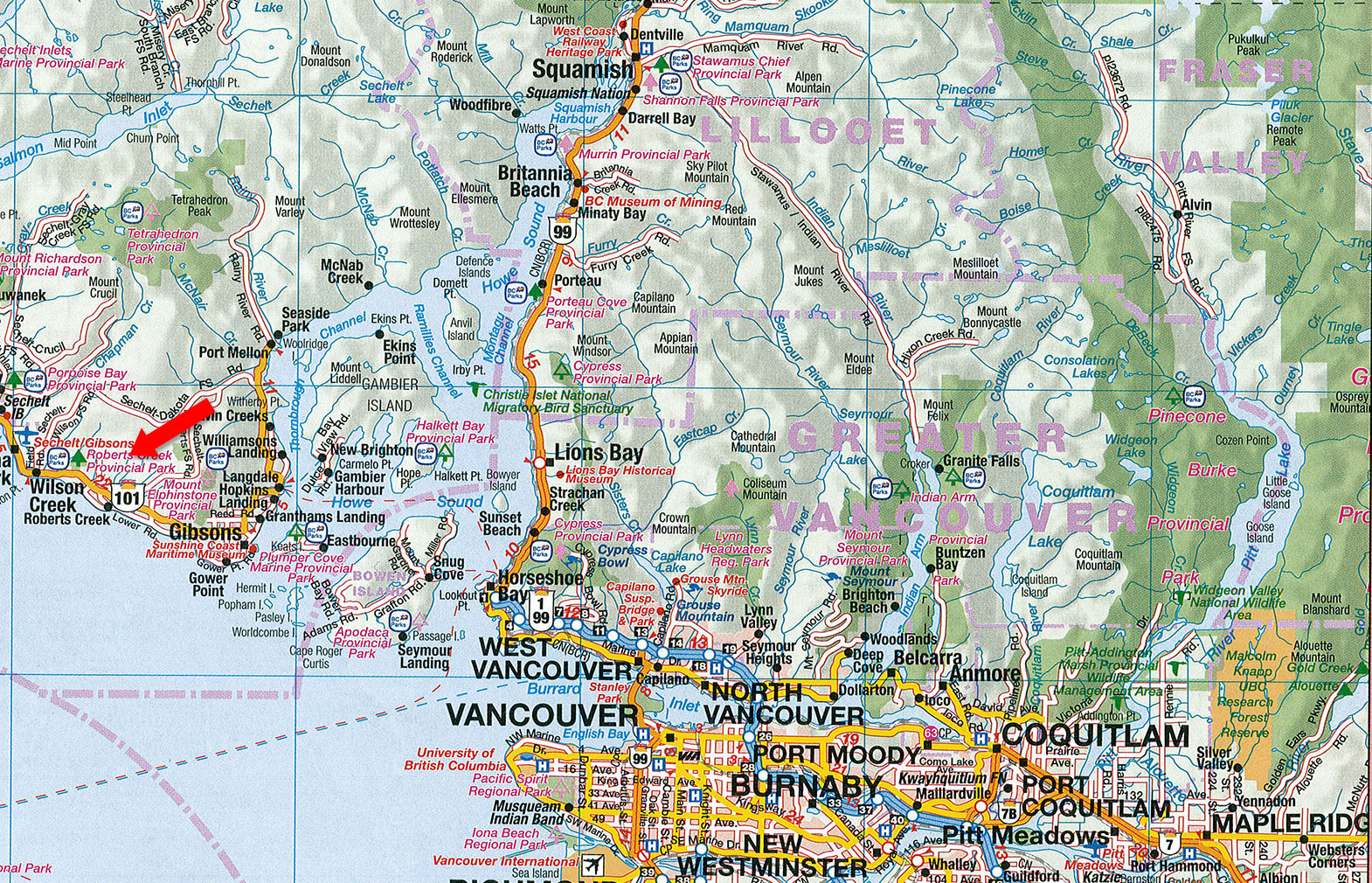 Roberts Creek is also the location for several important regional amenities including Dakota Ridge, a winter recreation area offering 12 km of groomed snowshoe and cross-country ski trails, the “Sechelt” landfill, the Sunshine Coast Regional District’s water intake and the Seaview Cemetery.