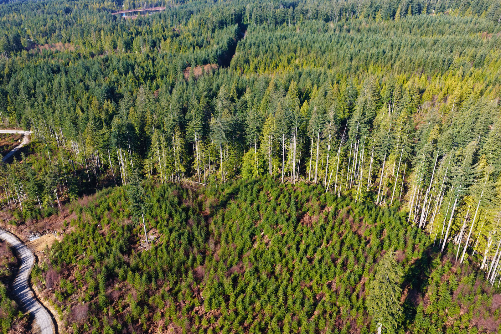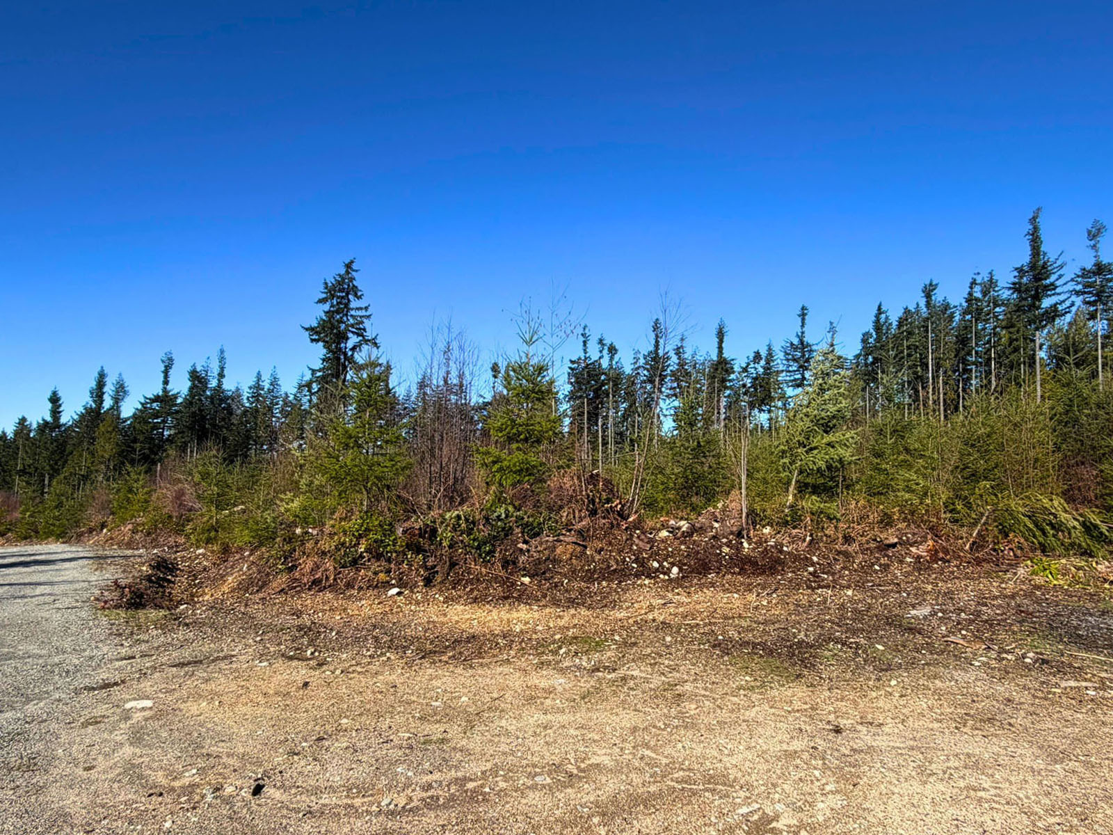 The property is primarily covered in younger forest growth, with a gentle topography that provides usable areas for building and clearing as needed. A west-facing aspect allows for good sun exposure throughout the day.