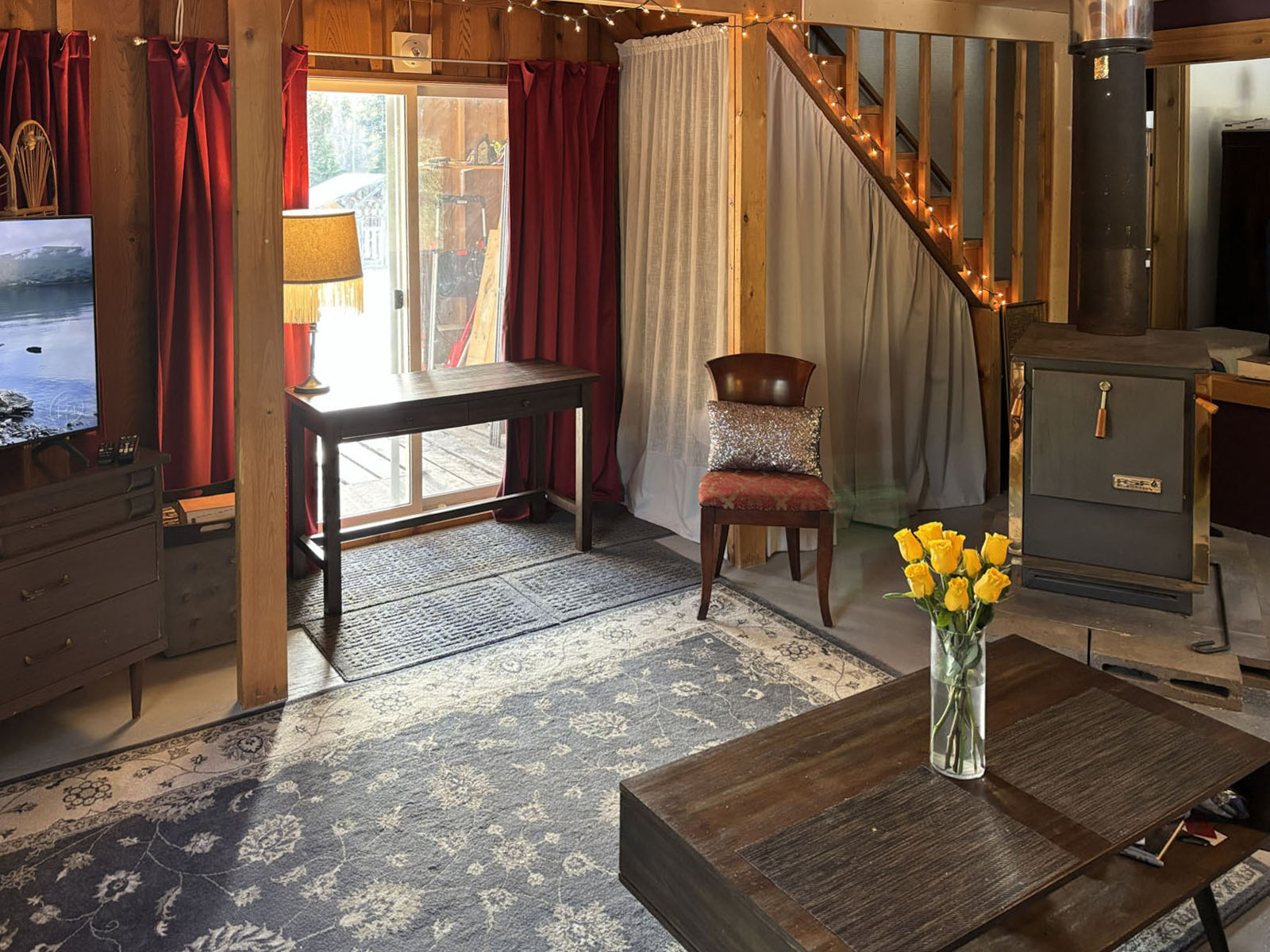10.52 acres in Rosswood, 35 minutes from Terrace, enjoy rural living with spectacular mountain views. Large wood stove, upper and lower decks, and a short, easy-access driveway. Small separate guest cabin, treed privacy, and a deep drilled artesian well make this a beautiful year-round retreat.