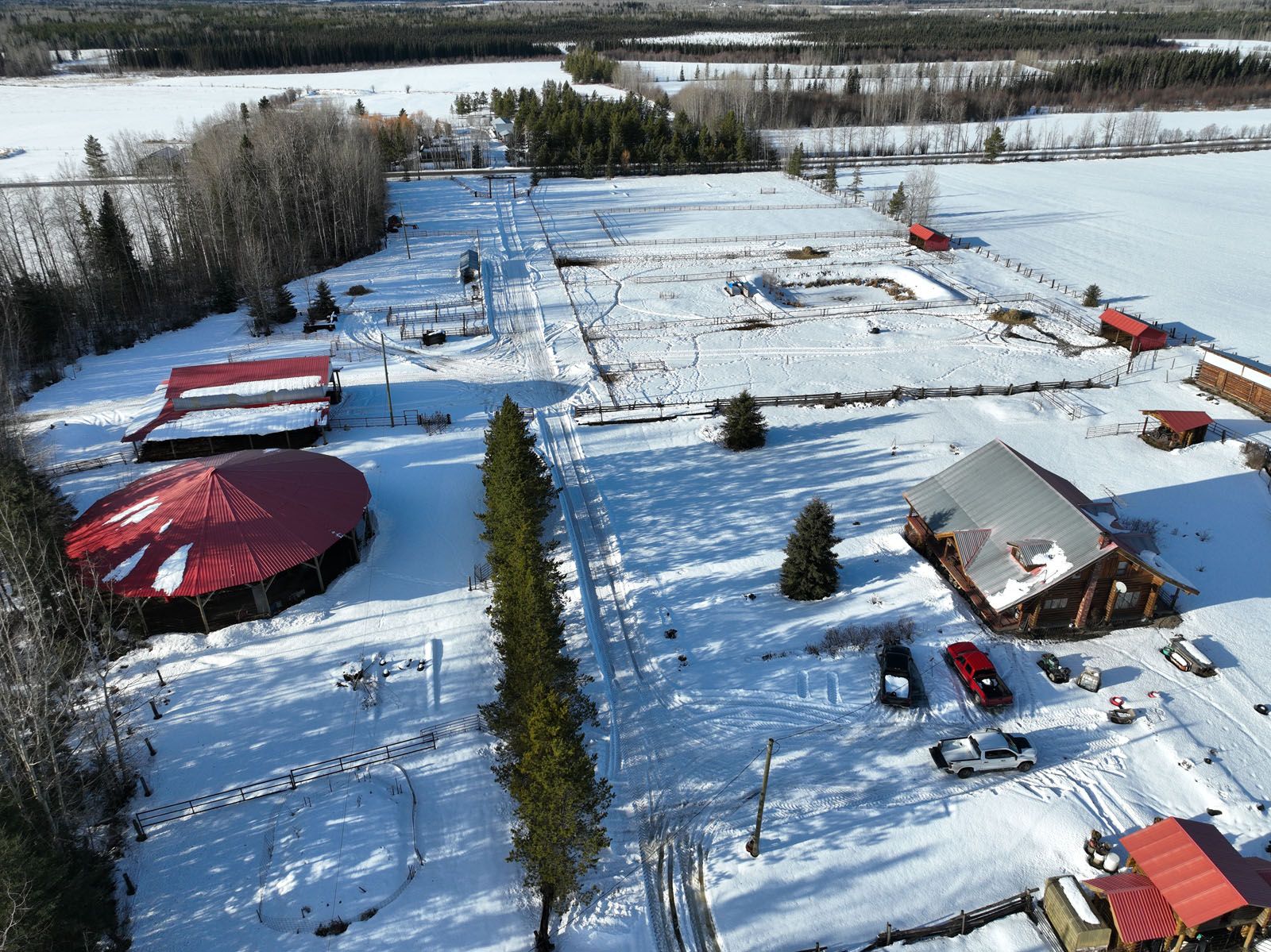 151.82-acre ranch just outside Prince George. Fully developed equestrian operation featuring fenced pastures, arenas, stables & extensive infrastructure. Including a creek with water rights, six dugouts, direct access to recreation trails, a 2,900 sq. ft. custom log home, multiple barns & riding facilities.