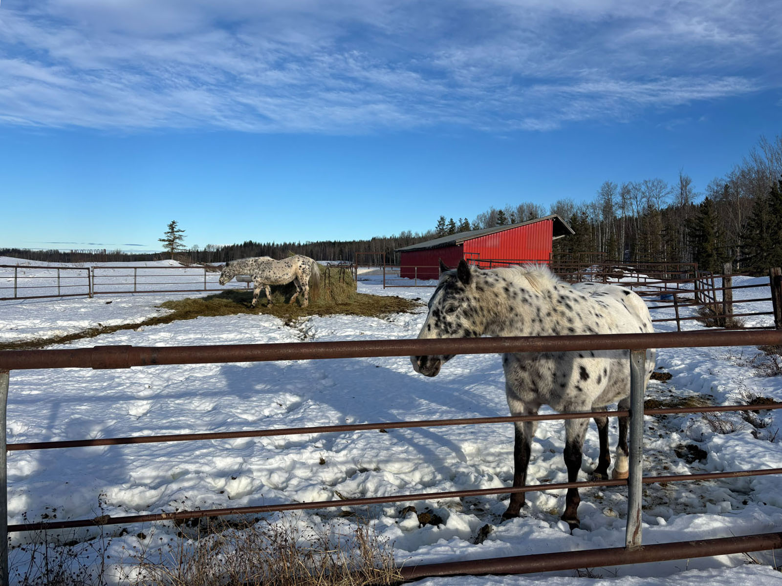 The ranch is recognized internationally for its 4th, 5th and multi-generation Foundation Appaloosas, with approximately 100 head of this distinct and historic breed. A creek with water rights runs through the land, supported by six maintained dugouts for livestock watering. There is direct access off the back of the property to the Tabor Mountain Recreation Area, offering over 250 km of mapped wilderness trails.