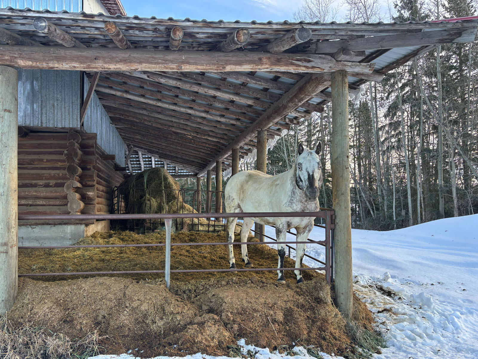 Horses at the Centre are raised in as natural an environment as possible. Mares graze on approximately 300 acres of seeded range, giving foals the space to develop naturally with minimal interference. Weaning occurs in late autumn, followed by feeding high-quality alfalfa hay and whole oats. In spring, young horses are turned out with an experienced gelding in bush pasture, encouraging coordination, muscle development, and social learning. Early handling focuses only on essentials—leading and hoof care—aided by generations of selective breeding for calm, cooperative dispositions.