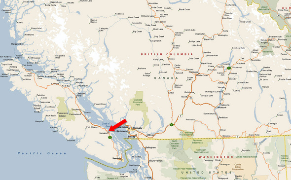 49°10'36.13"N and 123°55'9.43"W