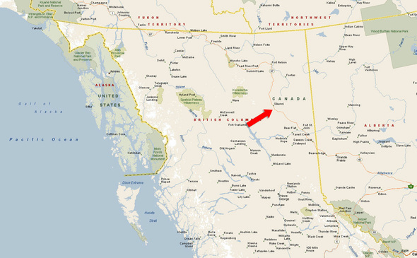 57° 0'20.28"N and 122°44'45.90"W