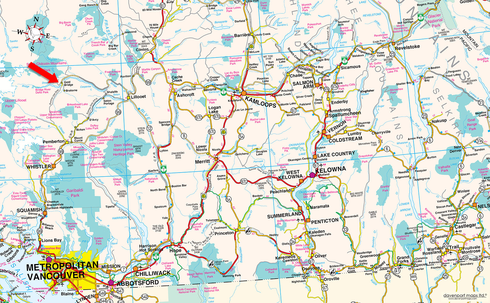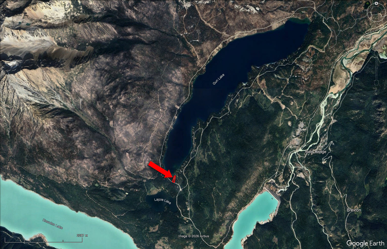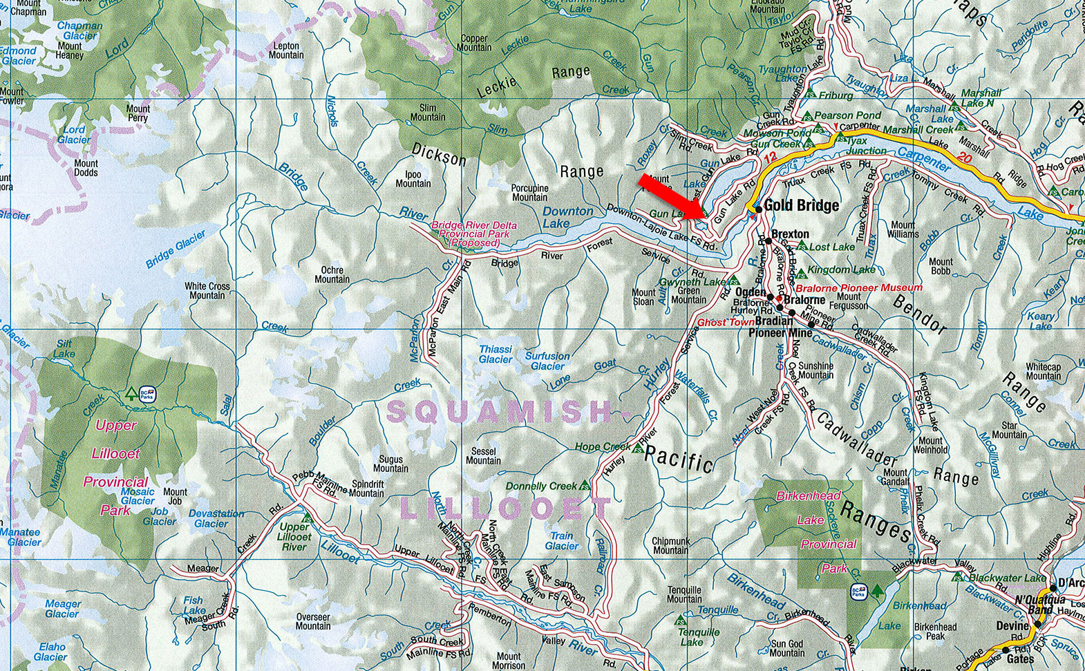 Head on Main Street for approximately 1.0 km, then turn onto Moha Road (which merges into Bridge River Road/Lillooet-Pioneer Road) and follow it for 4.5 km. Keep on Lillooet Pioneer Road 40/Carpenter Lake Road and follow it for the next 98 km (77.7 km + 20.3 km). Finally, transition onto Gun Lake Road W and continue for 7.1 km to arrive at the property.