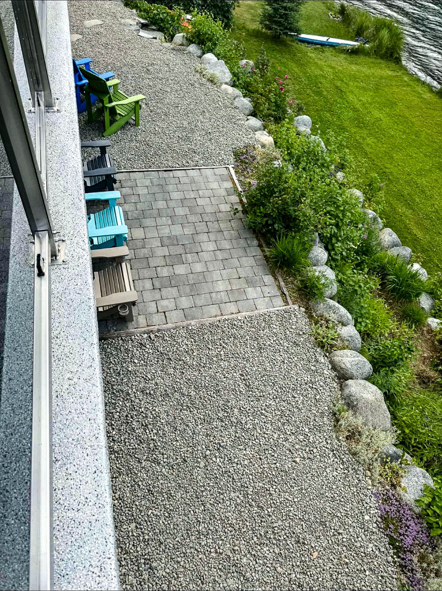 The lot is irregular in shape, featuring approximately 120 feet (36.5 metres) of frontage along the lake side.