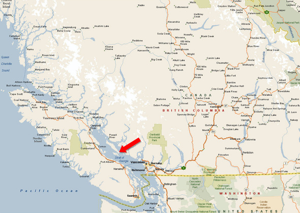 49°31'30.25"N and 124° 8'38.42"W