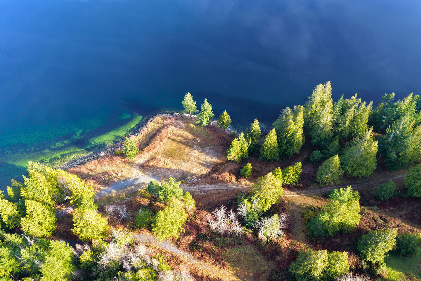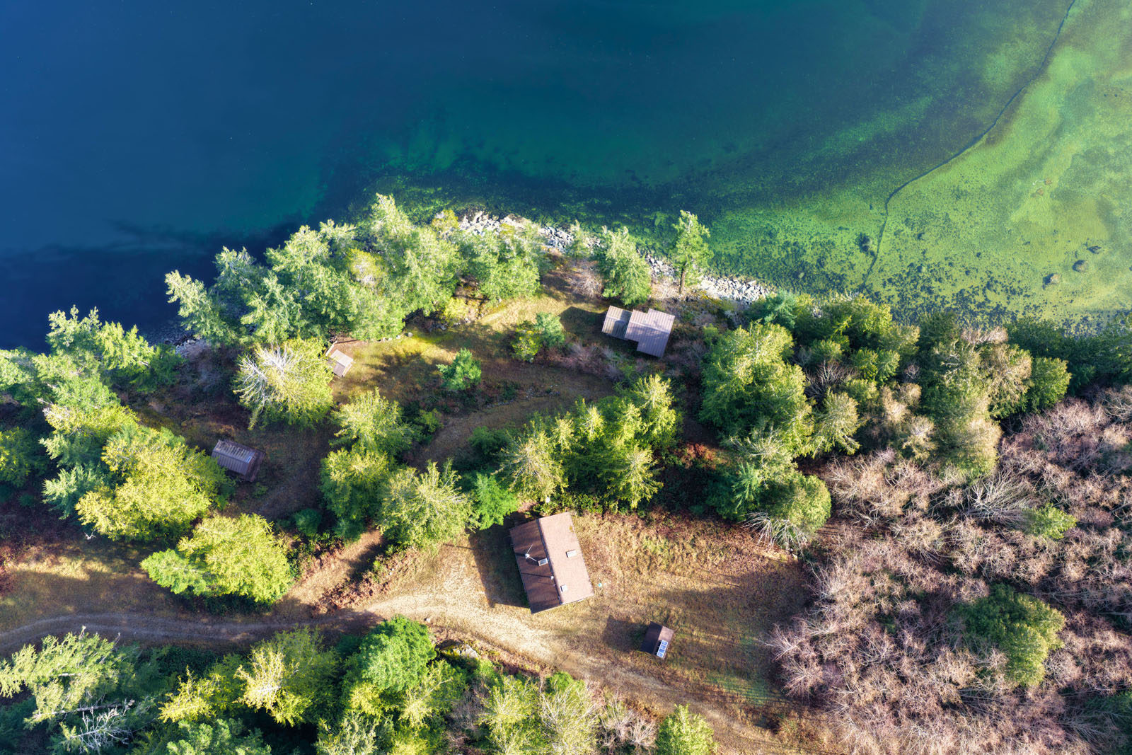 Road access is in place with a recently improved internal road network and underground power brought onto the property, including to a cleared and prepared main building site positioned directly above the boat launch and foreshore tenure area. Improvements include two existing cabins—a 2-bedroom and a 1-bedroom—providing immediate use while planning further development while maintaining privacy throughout the balance of the land.