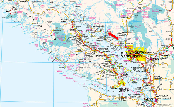 The property is approximately 2.5 hours from Vancouver on the Sunshine Coast and is located in Sechelt Inlet, right across from the small community of Egmont.