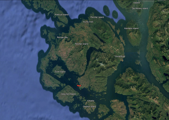 Located near the southern end of Porcher Island, this 109-acre Island is a secluded gem with approximately 12,000 feet of meandering waterfront. The area is spectacular for recreational fishing, hunting and outdoor adventure. A short run across to Freeman's Pass and the outer fishing ground of Oval Bank, it is ideally situated for eco-tourism, kayaking, hiking and fishing. Surrounding waters provide excellent salmon, cod, halibut and crab fishing. A short boat trip and hike provides access to Oval Bay, noted for its miles of varied beaches along the edge of the famous Hecate Straits. A lodge or resort would be a natural for this setting.