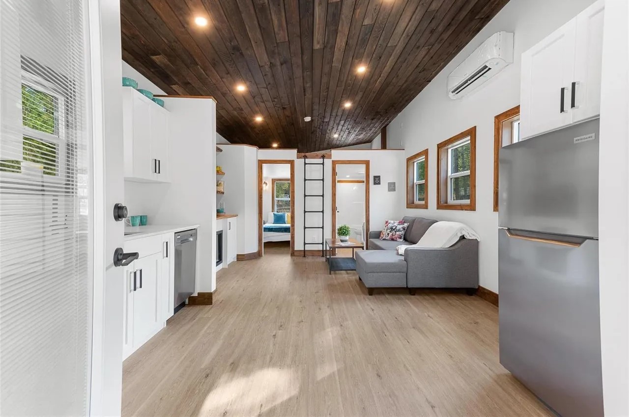 Certified A277 modular house has 400 ft2 on the main floor, a 400 ft2 basement and 117 ft2 loft.
