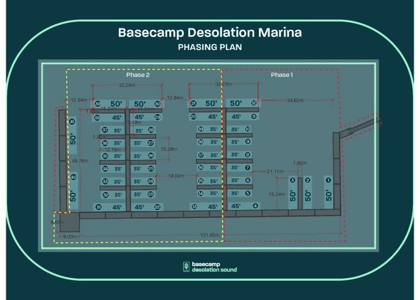 Landowners at Basecamp have the exclusive opportunity to purchase 20-year prepaid moorage slips at Basecamp, located right around the corner from Desolation Sound. The first phase of the Basecamp Marina is now completed and offers a variety of slip lengths from 35' to 100', with power, fresh water and Wi-Fi enabled security. Note: moorage is available exclusively to residents of Basecamp.