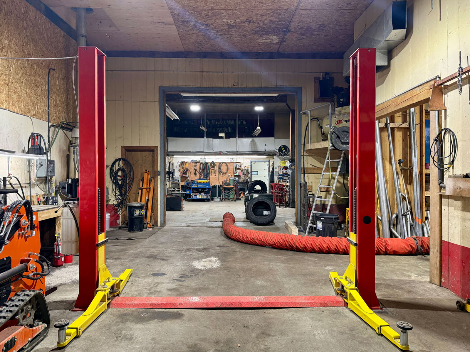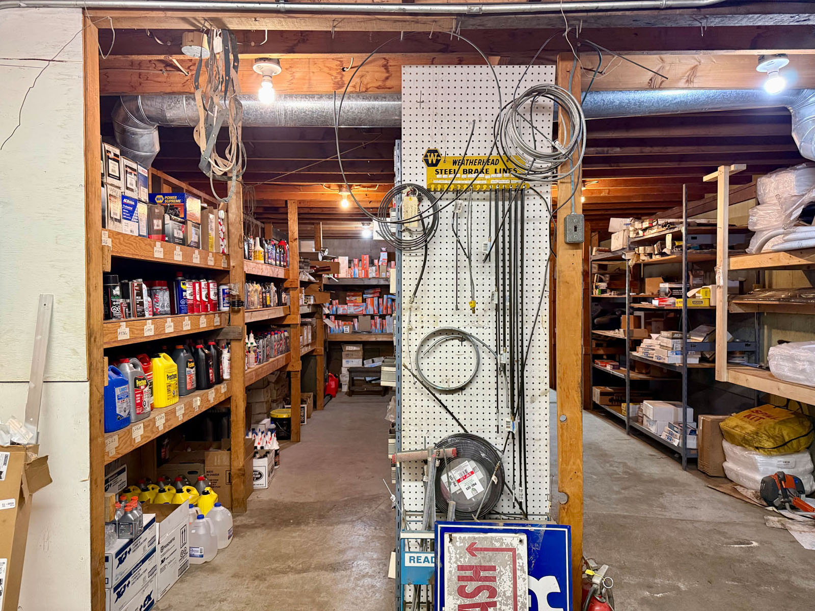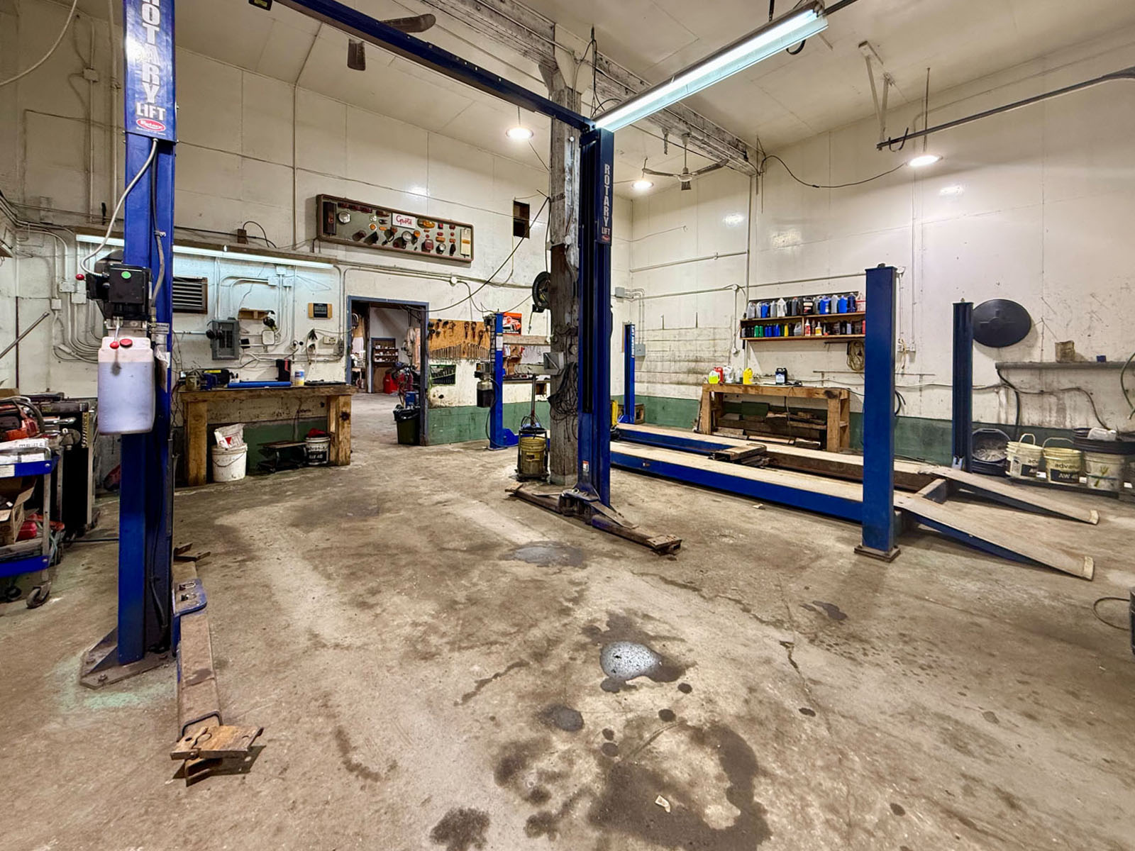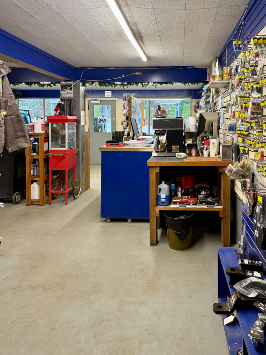 Additional infrastructure includes a 1-bay, coin-operated car wash (the only one in town), three mechanical bays with three hoists, including a designated tire shop, each with its own 10’ overhead door. A separate small engine shop/oil storage area features a loading dock and an 8’ x 8’ door, along with a dedicated stock room.