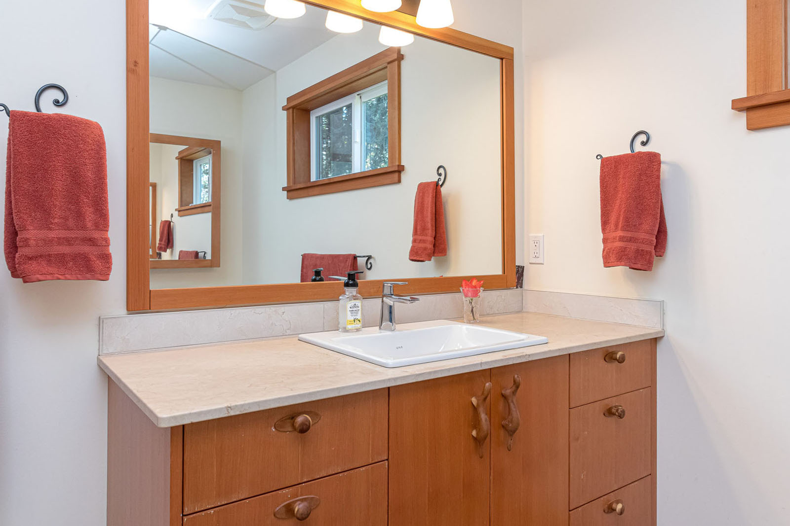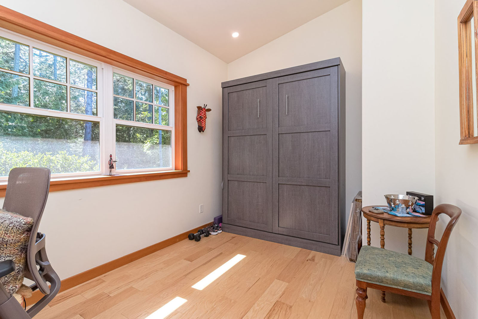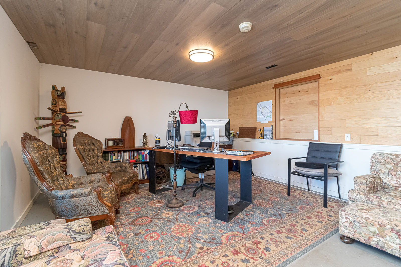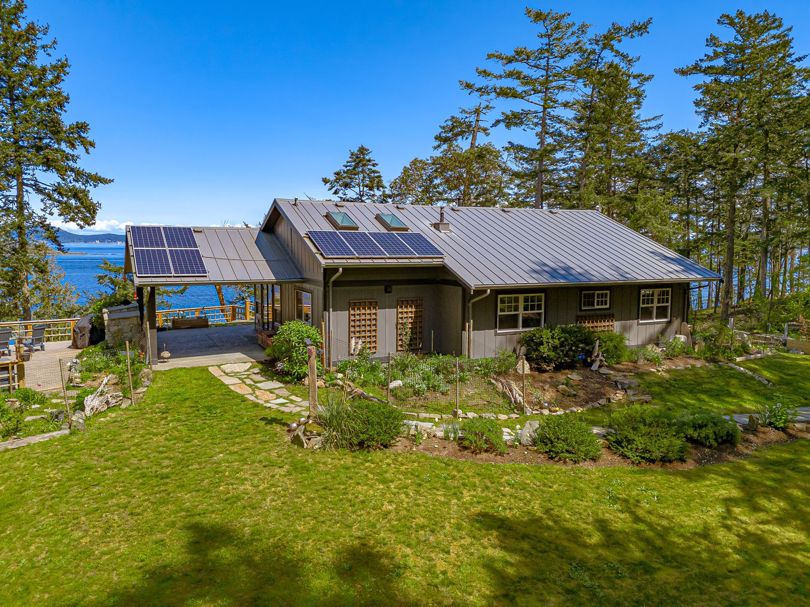 The main level includes an east-facing ocean view master suite, second bedroom, third bedroom or office with a Murphy bed, two sleek bathrooms and cozy propane fireplace complement the space. The half basement with a walkout entry, a Blaze King wood stove and on-demand water heater serves as laundry, second office, fourth bedroom, and/or rec space and the crawl space provide ample storage.