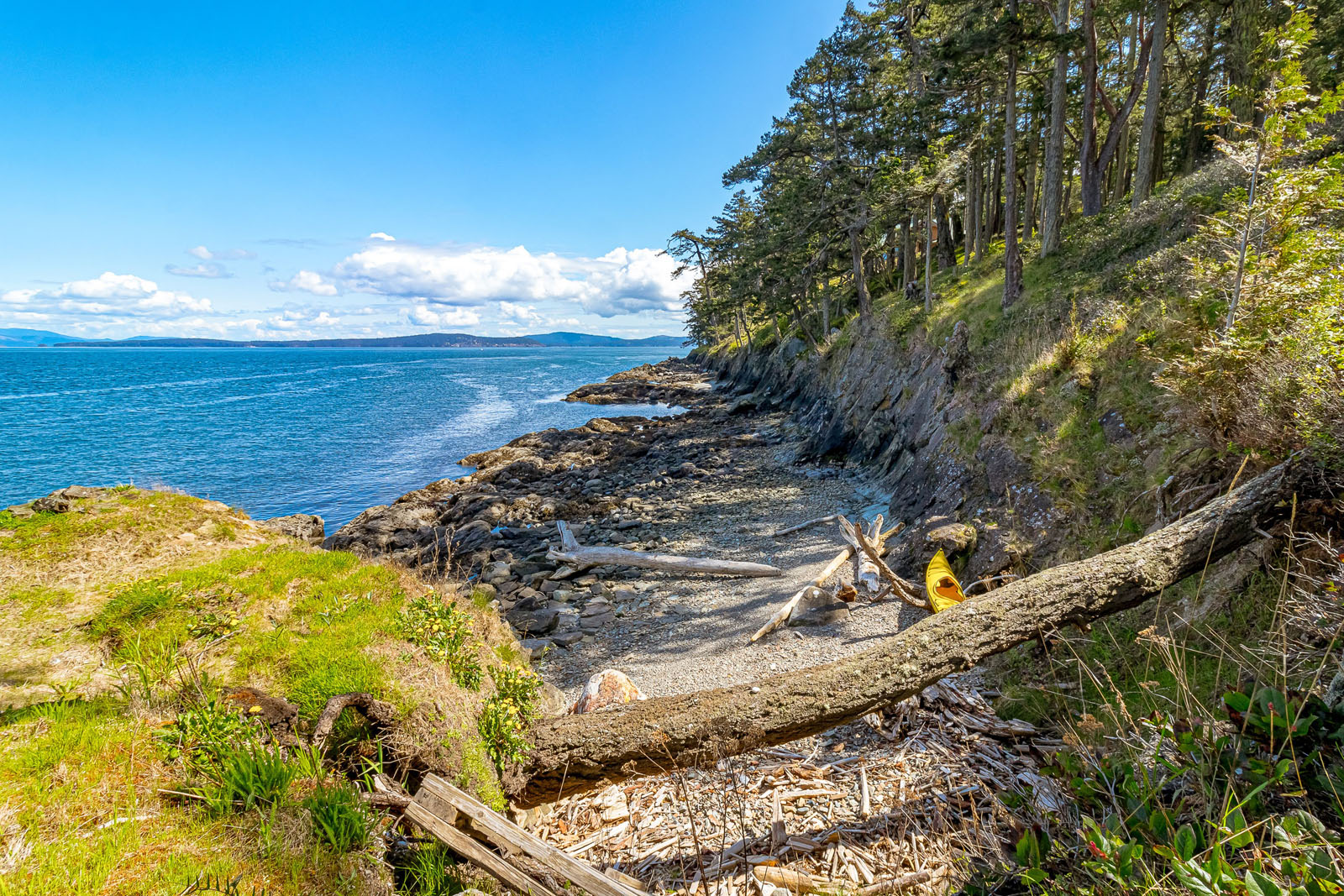 The largest lot on the east side of Sidney Island, this 3.17-acre lot with 385 feet of oceanfront is the ideal coastal sanctuary to escape the mounting stress of today’s world. It epitomizes off the grid living, year-round or recreationally, with invigorating sunrises and stunning sunsets enhancing the breathtaking views across Haro Strait with Mount Baker as a backdrop.