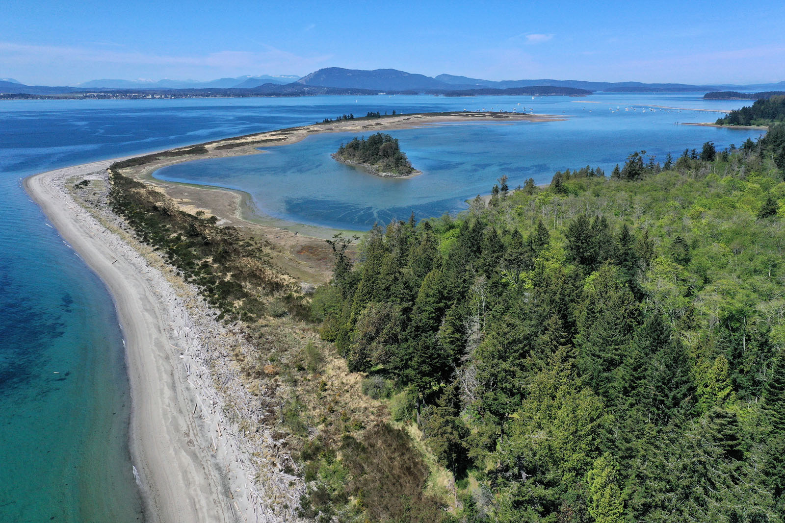 Both Sidney Island and neighboring James Island are geographically unique in that they are the only Canadian Gulf Islands composed almost entirely of quaternary drift deposits—unconsolidated sand and gravel deposited by glaciers thousands of years ago—which form the sandy coastline. The east side of the island is solid rock with no geo-technical setbacks required.