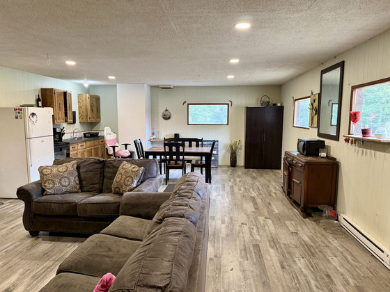 The large versatile shop is perfectly equipped to support a range of business activities. Featuring a well-lit showroom with large windows, providing a welcoming space for customers. A front desk and parts room offer organized areas for inventory and client interactions, while the spacious workshop, with 8 ft doors, ensures easy access for larger projects. Additionally, the shop includes a bathroom for convenience and is heated by a reliable wood/oil furnace, ensuring a comfortable working environment year-round.