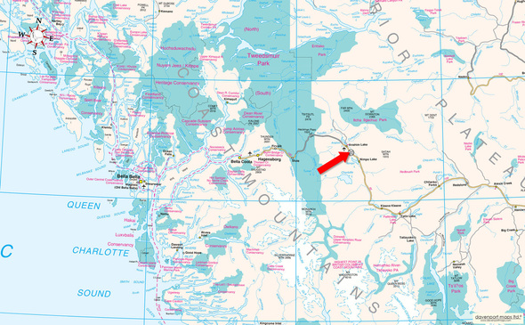 Dean River Valley between Anahim Peak to the west and the Ilgachuz and Itcha Ranges to the east, is one of the great valley of the Chilcotin. It is a wildlife paradise with moose, caribou, wolves, bears, ducks and geese.