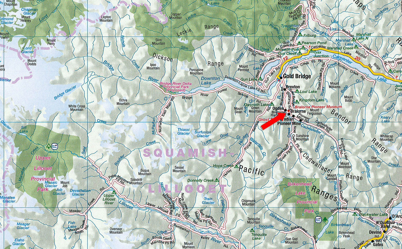Bralorne is a remote, historic gold mining town nestled in the mountains of British Columbia's South Chilcotin region, within the Squamish-Lillooet Regional District. Located about two hours northwest of Pemberton and roughly 5.5 hours from North Vancouver, Bralorne sits at the edge of vast wilderness, offering some of the most spectacular alpine scenery in the province.