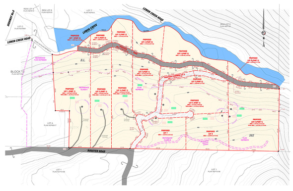 100+ acre development opportunity with PLA for an 8-parcel subdivision—6 creekfront lots and 2 non-creekfront. Over 1 km of Lemon Creek frontage, level benches, and great views of the Valhallas. Natural beauty with strong investment potential. Includes permitted gravel pit.