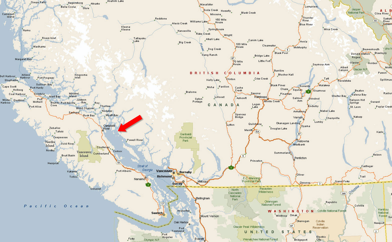 Desolation Sound Provincial Marine Park (8,256 hectares) is British Columbia’s largest marine park. This includes more than 60 km of shoreline, several offshore islands and a gradually rising upland that contains a number of lakes, waterways and waterfalls. Unwin Lake, a 173-hectare body of fresh water, is the park's largest. Set back to the north and east, Coast Mountains soar to more than 2,400 metres. The warm waters surrounding the area teem with sea life. Ideal for warm water swimming, scuba diving and feasting on your catch of the day, salmon, cod, prawns, crab, clams and oysters. Plenty other tasty morsels lie beneath on the ocean's floor. To acquire them you must put on your scuba gear and get a little wet, or you could take a short drive by boat or car to the Laughing Oyster Restaurant at the head of Okeover Inlet, which is one, if not the best, place to eat in the overall area of Powell River.