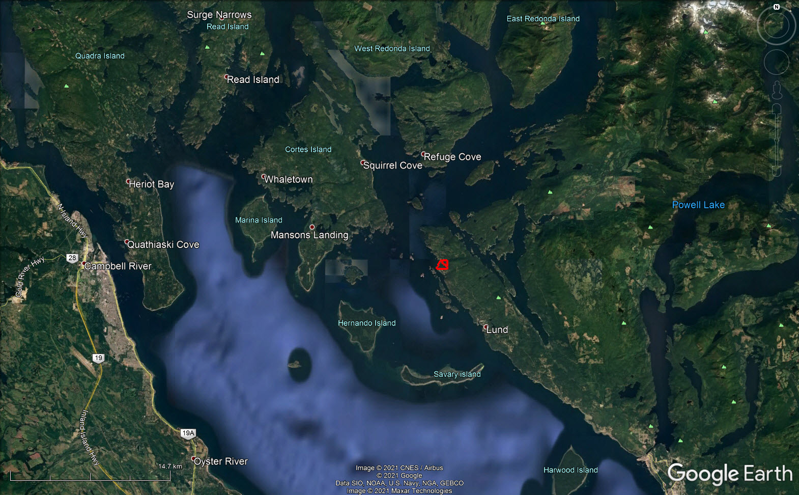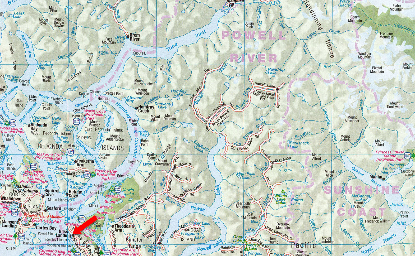 Bliss Landing is situated near an area known locally as The Ragged Islands or Copeland Islands Group. The 437-hectare archipelago comprises of four islands and 14 islets that protect narrow Thulin Passage, the main passageway for boats and kayakers traveling between the Discovery Islands and Desolation Sound, which is directly in front of Bliss Landing.