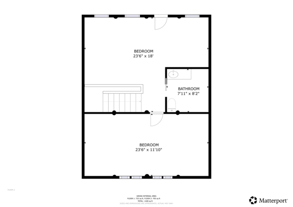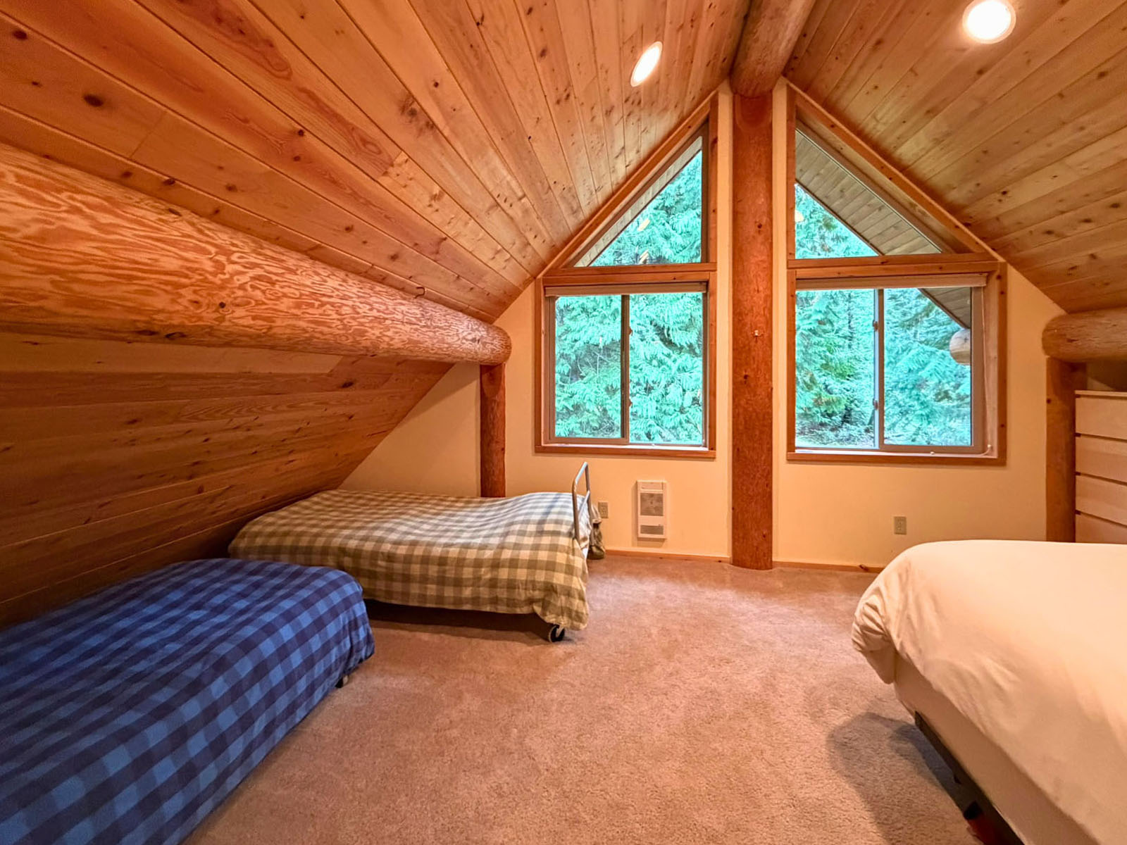 Upstairs, a 23’6 x 18 ft. family/TV room offers space for guests or children, complete with a 2-piece bathroom and access to a covered sundeck—perfect for morning coffee among the treetops. A second spacious 23’6 x 11’10 bedroom completes the upper floor, both rooms carpeted for added comfort.