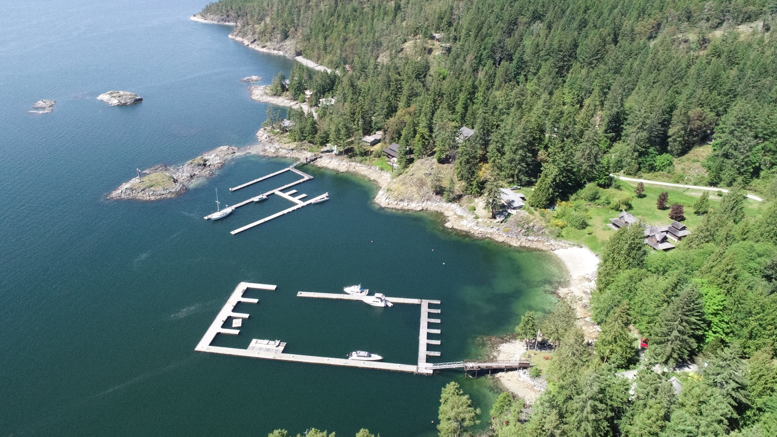 Just 15 minutes south, Lund serves as the gateway to the Sunshine Coast, with restaurants, a general store, fuel dock, bakery, hotel, and tour operators. The property is road-accessible and serviced with power, water, and reliable TELUS reception. There is also direct floatplane access with seasonal scheduled Kenmore Air flights from Seattle to the Bliss Dock, and daily flights from Vancouver to Powell River and Comox International Airports.