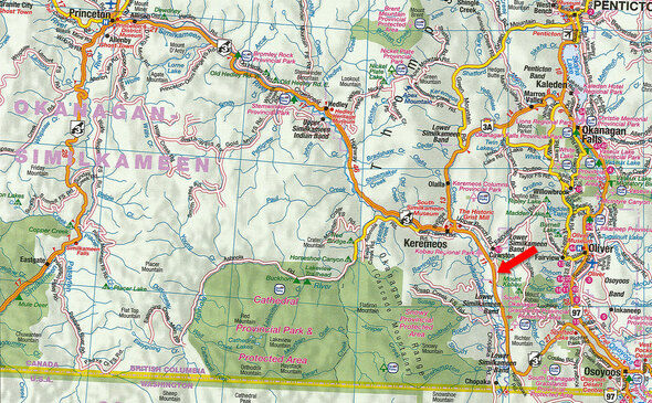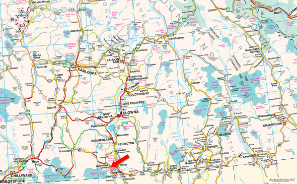 49° 8'49.32"N and 119°43'50.29"W