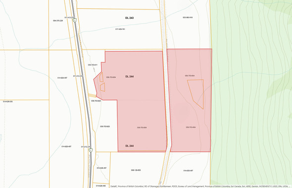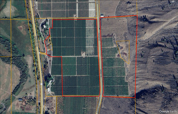 This is an established, high producing and profitable orchard with Class 1 soils. The property is almost entirely level or slightly sloped. Both the eastern and western portions of the subject property have both legal and physical vehicle access via Barcelo Road. Barcelo Road is serviced with both power and telecommunications lines, although the subject property is not serviced except for irrigation water provided by several wells. The property also has an easement for an irrigation water system over a neighbouring adjacent parcel. The parcel contains multiple areas suitable for building a home or outbuildings. The property has no zoning but is mostly located within the Agricultural Land Reserve.