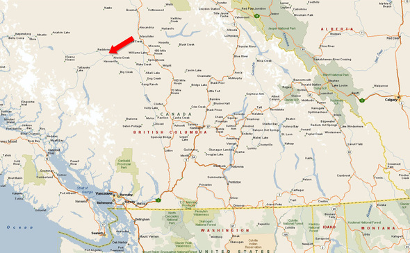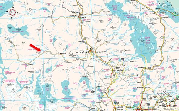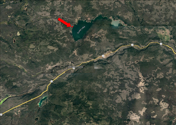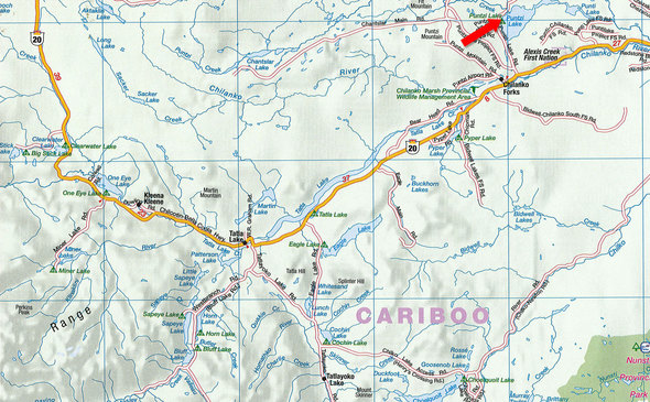 To reach Puntzi Lake from Williams Lake, turn west onto Highway 20. Follow Highway 20 until you are 64 km (39.7 mi) west of Alexis Creek. Turn north off Highway 20 on Puntzi Lake Road. The property is located on the right at 3990 Puntzi Lake Road.