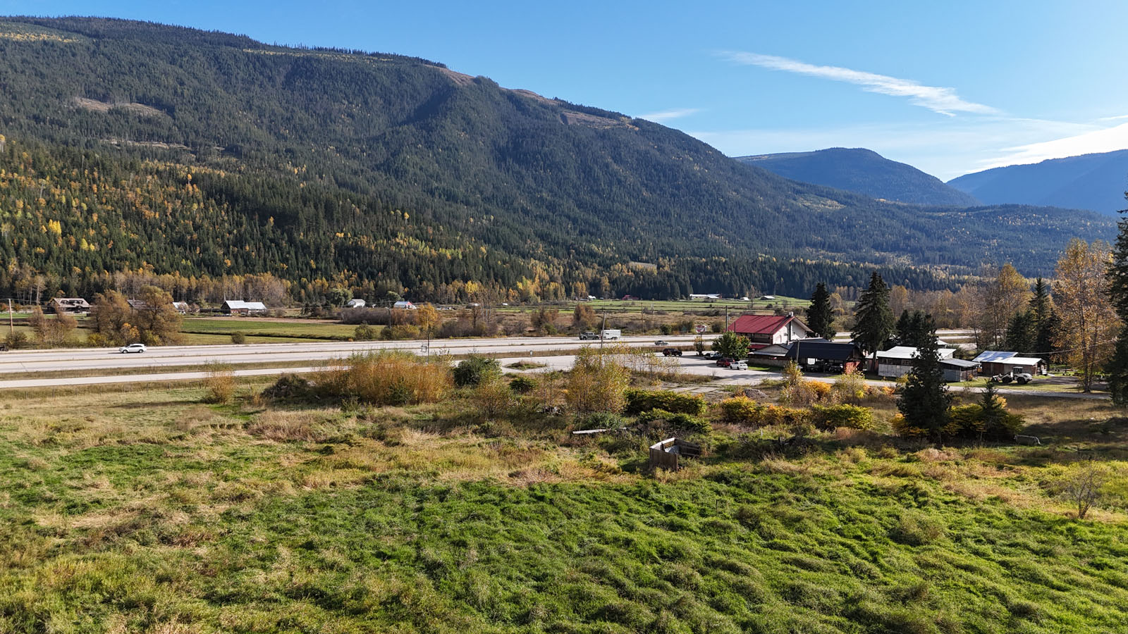 Excellent highway access from east and west with frontage road and turning lanes off highway. Permitted uses include a house plus secondary dwelling, B&B, and all agricultural uses. The property would make an ideal greenhouse property with year-round fruit stand. Excellent access for transport to Revelstoke and Sicamous and great highway exposure. Approximately half the land is high and dry, and ready for development into structures being a former motel site that has since been deconstructed and half open grass land.