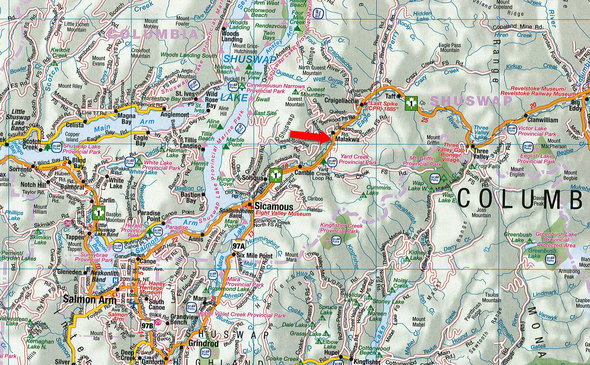 Yard Creek Provincial Park is situated 4 km (2.5 miles) south of Malakwa on Highway 1.5 only a kilometre from the property.