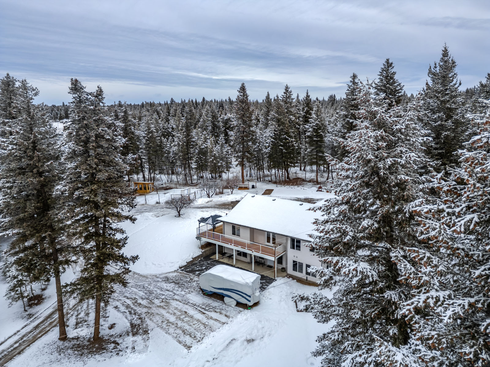 Practical improvements complement the setting. A large, detached shop provides ample room for sleds, quads, boats, and equipment, while a high fenced greenhouse supports productive gardening. The property is fenced, serviced by a drilled well and septic system, and offers a rare blend of infrastructure, privacy, lake proximity, and direct Crown land access. In an area valued for its recreation, space, and strong rural community, this property delivers a well-rounded Cariboo lifestyle without compromise.
