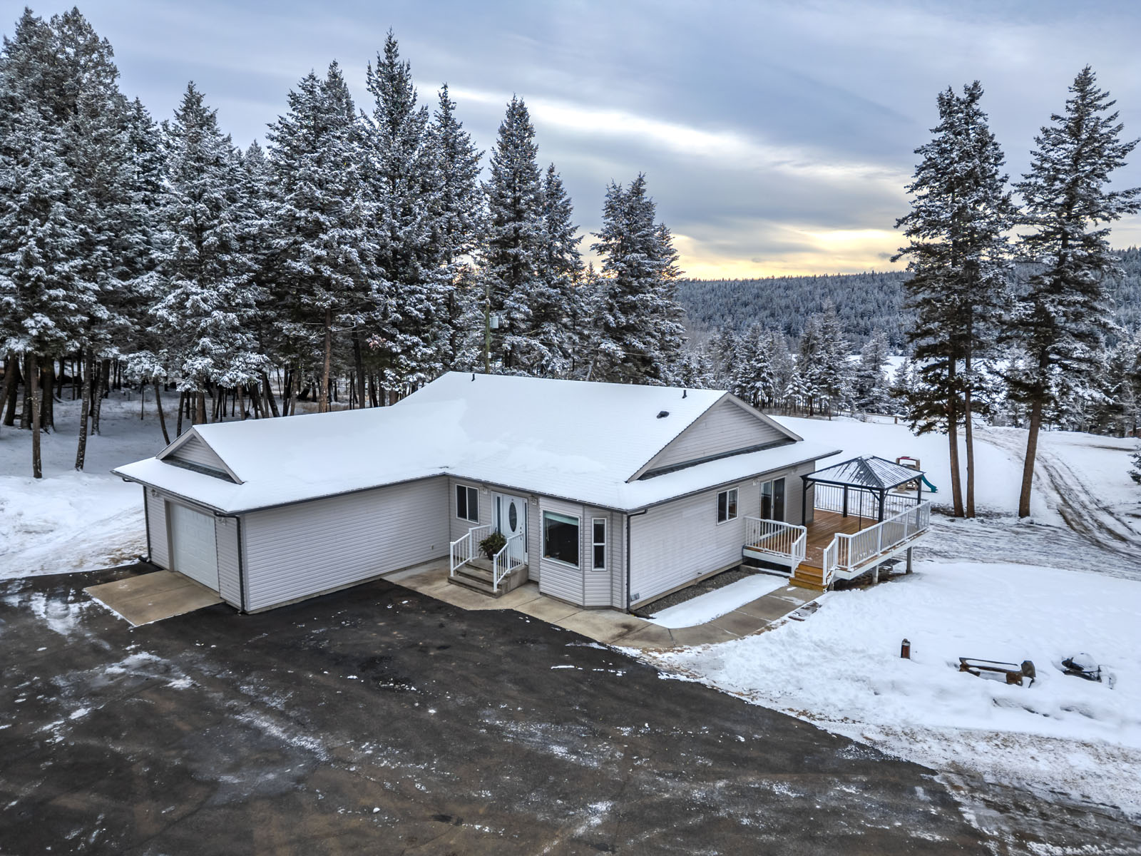 This 6.27-acre property backs directly onto Crown land with year-round recreation, just minutes from Lac la Hache. The 3,600 sq. ft. home offers in floor heating, spacious living areas, lake views, and a full basement. A detached shop, greenhouse, fencing, drilled well, and septic system complete the package.