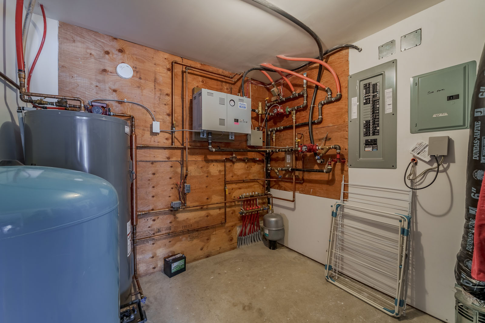 The home offers approximately 3,600 square feet over two levels, positioned to capture wide views of the lake and surrounding landscape. In floor heating runs throughout, supported by a dual boiler system that includes an outdoor wood boiler and an electric boiler, with natural gas services at the property line. The main level features a spacious kitchen, dining area, and a generously sized living room designed for comfortable family living and entertaining. The full basement provides substantial additional space, including a dedicated cold storage room for provisions or garden harvests, along with flexibility for added bedrooms, guest space, or hobbies.