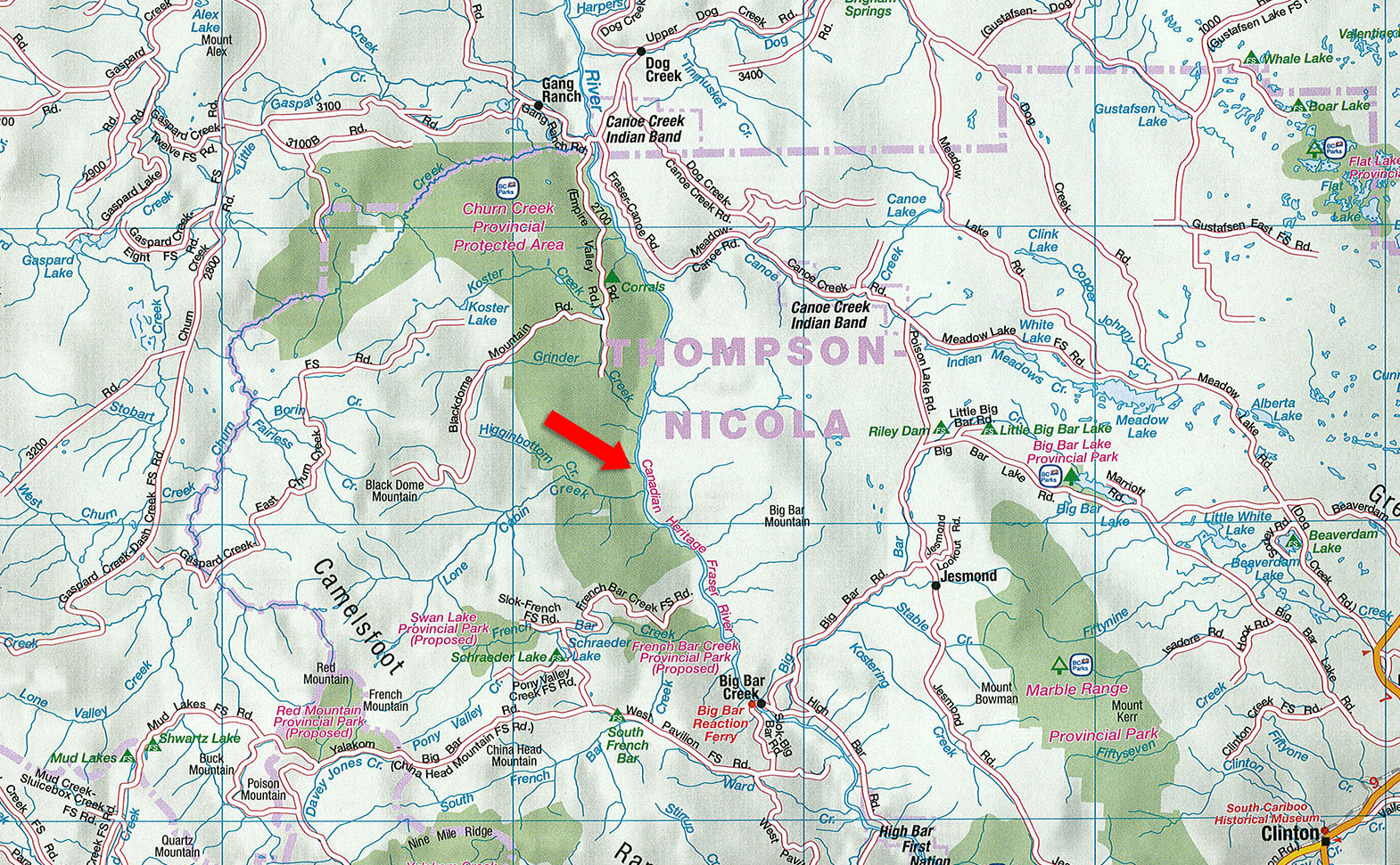 Located within the Churn Creek Protected Area, this area is one of British Columbia’s most intact and historically significant grassland landscapes, encompassing roughly 36,700 hectares along the west side of the Fraser River, approximately 60 km southeast of Williams Lake. The region is characterized by dramatic canyon terrain, open benchlands, and spring-fed creeks, supporting rare grassland ecosystems and abundant wildlife including mule deer and California bighorn sheep. Long valued for its ranching heritage, ecological importance, and limited development, Churn Creek remains a remote and lightly touched landscape that has changed little over the past century.