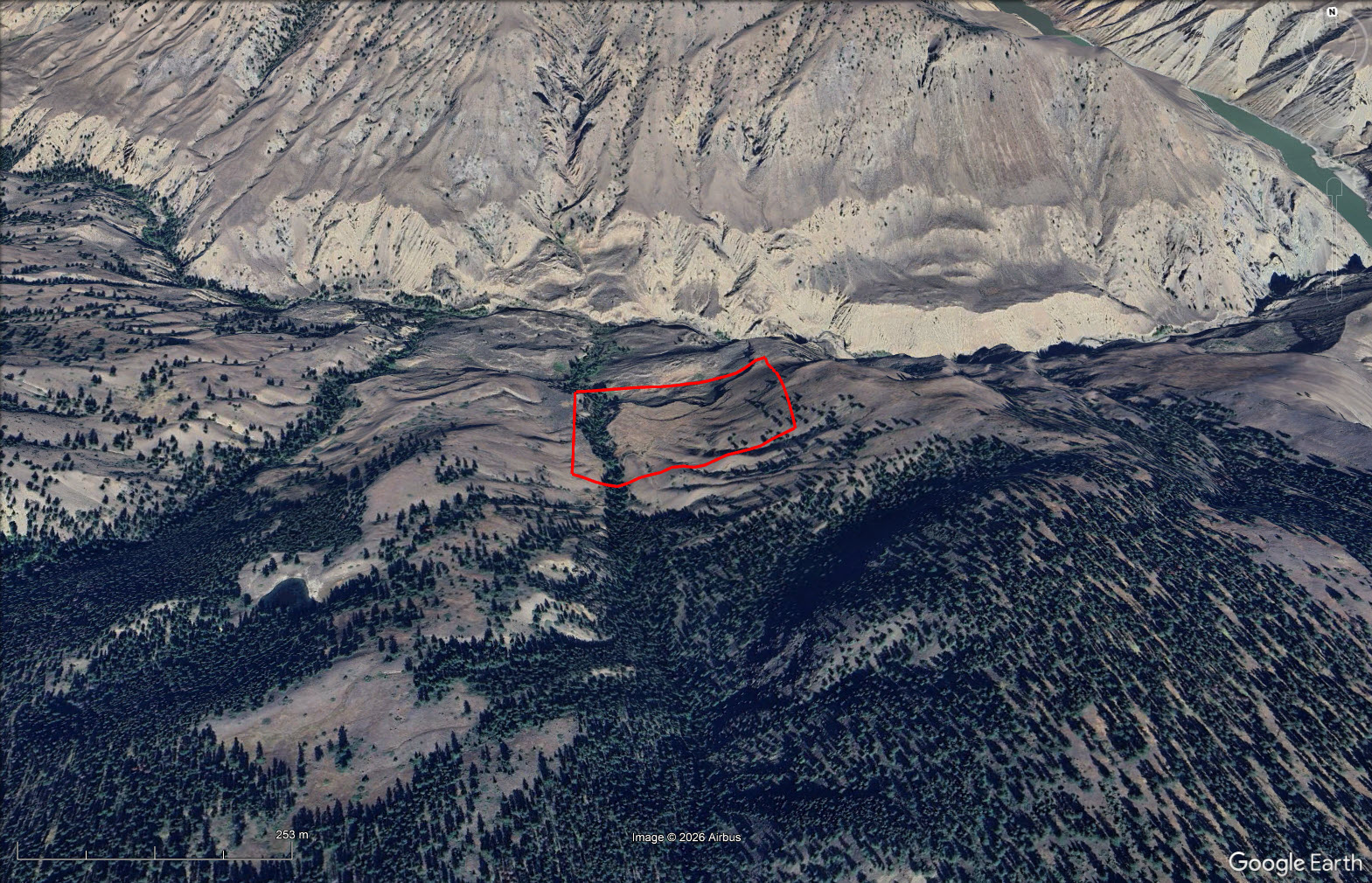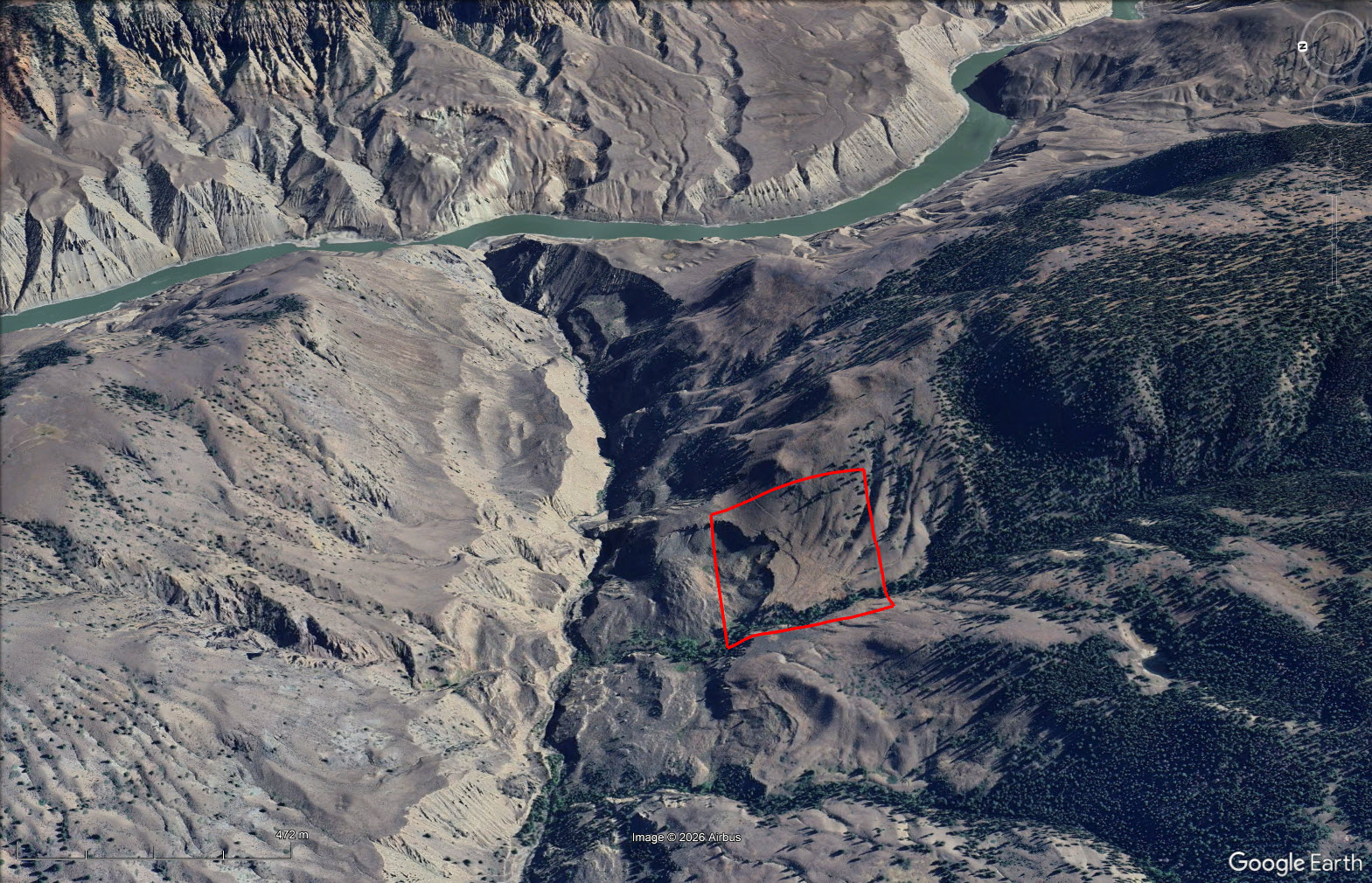 Historically, this land formed part of the legendary Empire Ranch, once one of British Columbia’s most expansive cattle operations. In later years, the property was owned by Simon Phillipine, a prospector who worked Simon’s Creek and packed gold out to Lillooet. Remnants of that era remain today, including the skeleton of two old cabins and a tack room located on a lower bench of the property, tucked beneath a dramatic 50 ft rock drop—quiet markers of a working frontier past. The land itself features two flatter benches positioned on the east and west sides of the creek, offering usable terrain within an otherwise rugged landscape. The property is bordered by Crown land on three sides and lies within the Churn Creek Protected Area, a provincially recognized landscape valued for its grasslands, wildlife habitat, and intact ranching heritage.