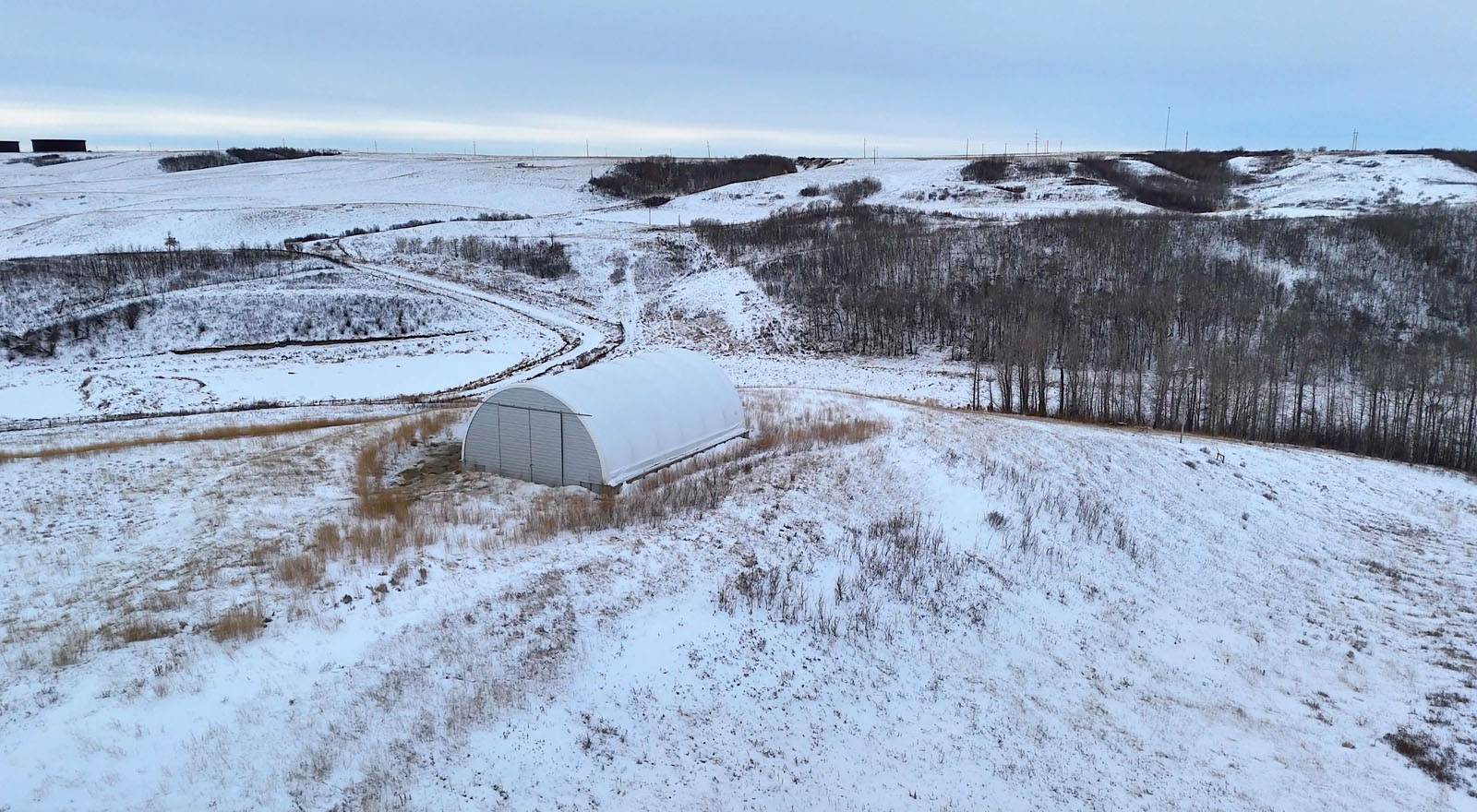175 acres in Flagstaff County near Hardisty features rolling prairie, an aspen-lined creek valley, multiple dugouts, and abundant wildlife. 60± acres are arable, with the balance suited for grazing, recreation, or a private building site; the land is fully fenced and includes a 40’ x 60’ coverall with power nearby.
