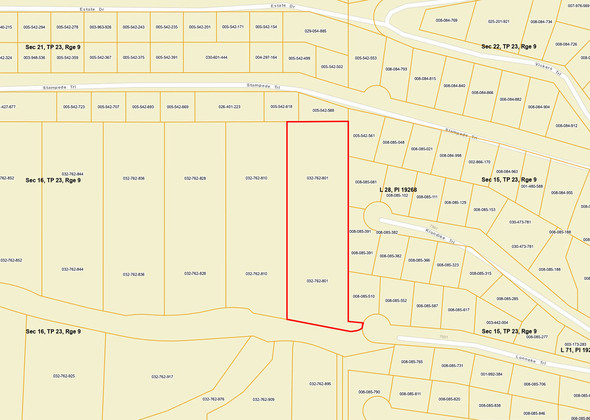 Lot 1 is also one of the larger lots in Highland Park Estates at 3.48 acres. The land is mostly forested and there is a long narrow/open meadow on one side of the lot with a creek/drainage route along its edge; an area frequented by wildlife. The land has a gentle slope towards the lake, excellent sun exposure and lake views waiting for the residence. CSRD water is at the lot line, power is at lot line and the lot is approved for a private septic system.