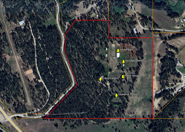 The land offers a pleasing mix of open pasture and healthy forest. A unique feature is a small pond that seasonally fills with groundwater in the spring/early summer, creating a natural watering area that is frequently visited by elk. With the addition of a liner, it could potentially be maintained as a year-round stock water pond for irrigation, fire suppression, or landscaping purposes.