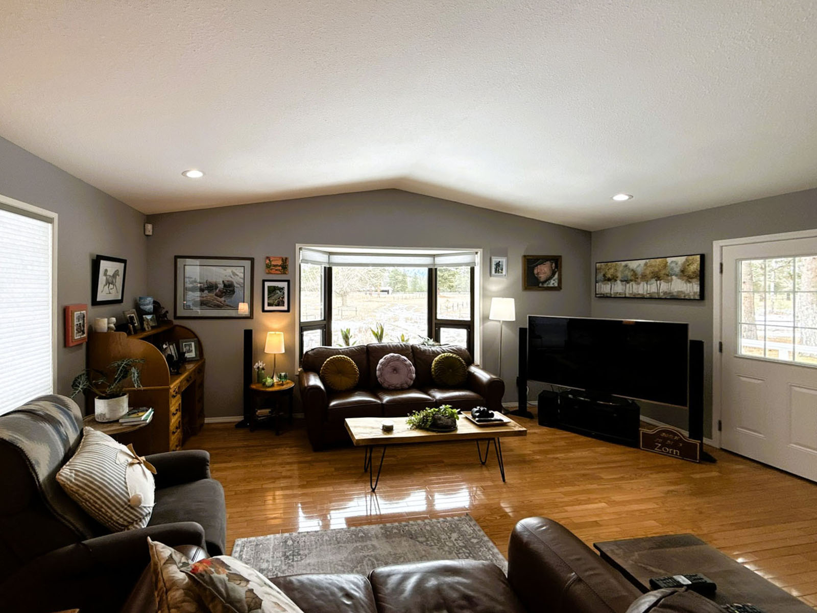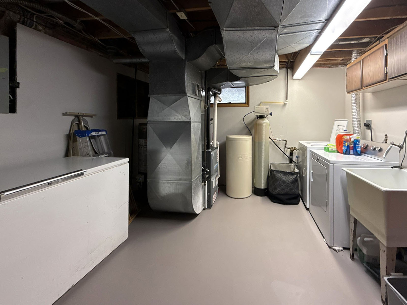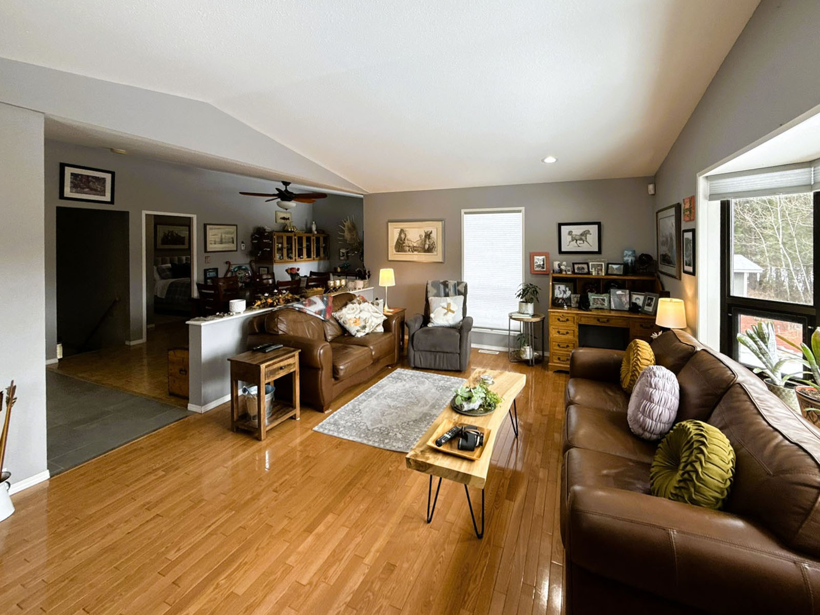 The property is well serviced with natural gas, 600-amp power, a 35 GPM drilled well, and a private septic system. The home includes a newer high-efficiency gas furnace, air conditioning, a reverse osmosis water filtration system in the kitchen, a water softener, and central vacuum.