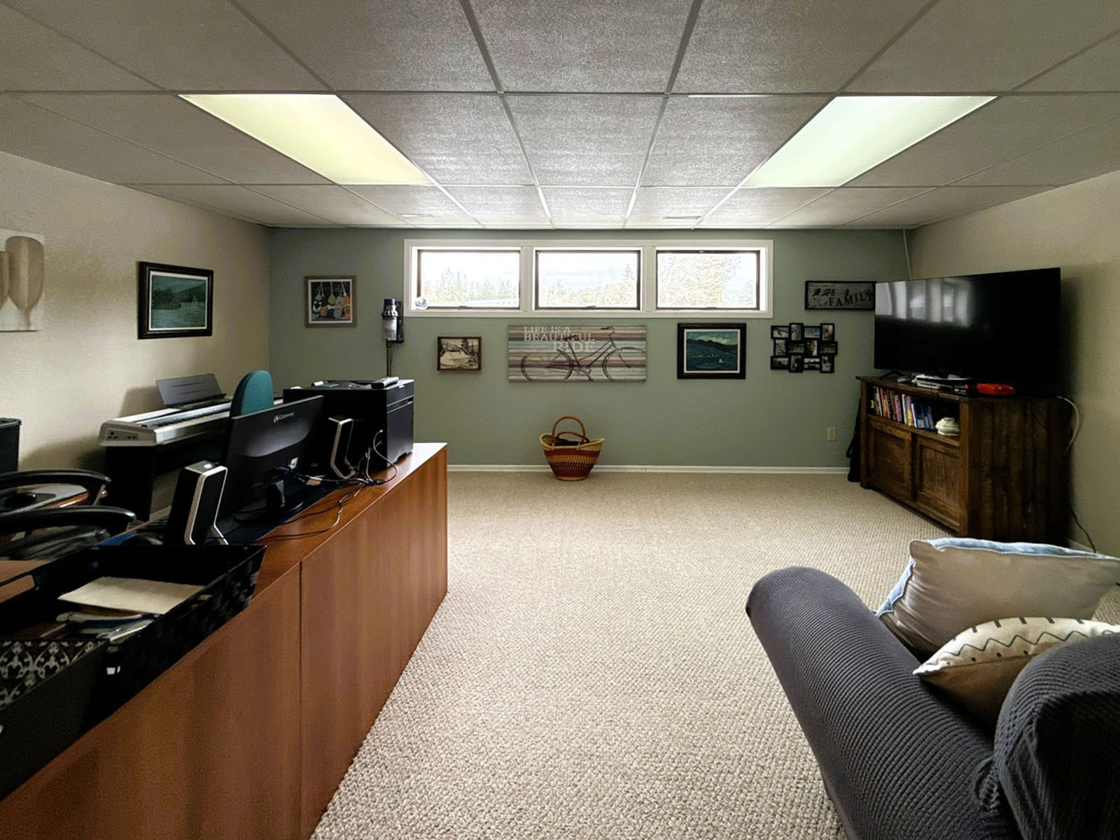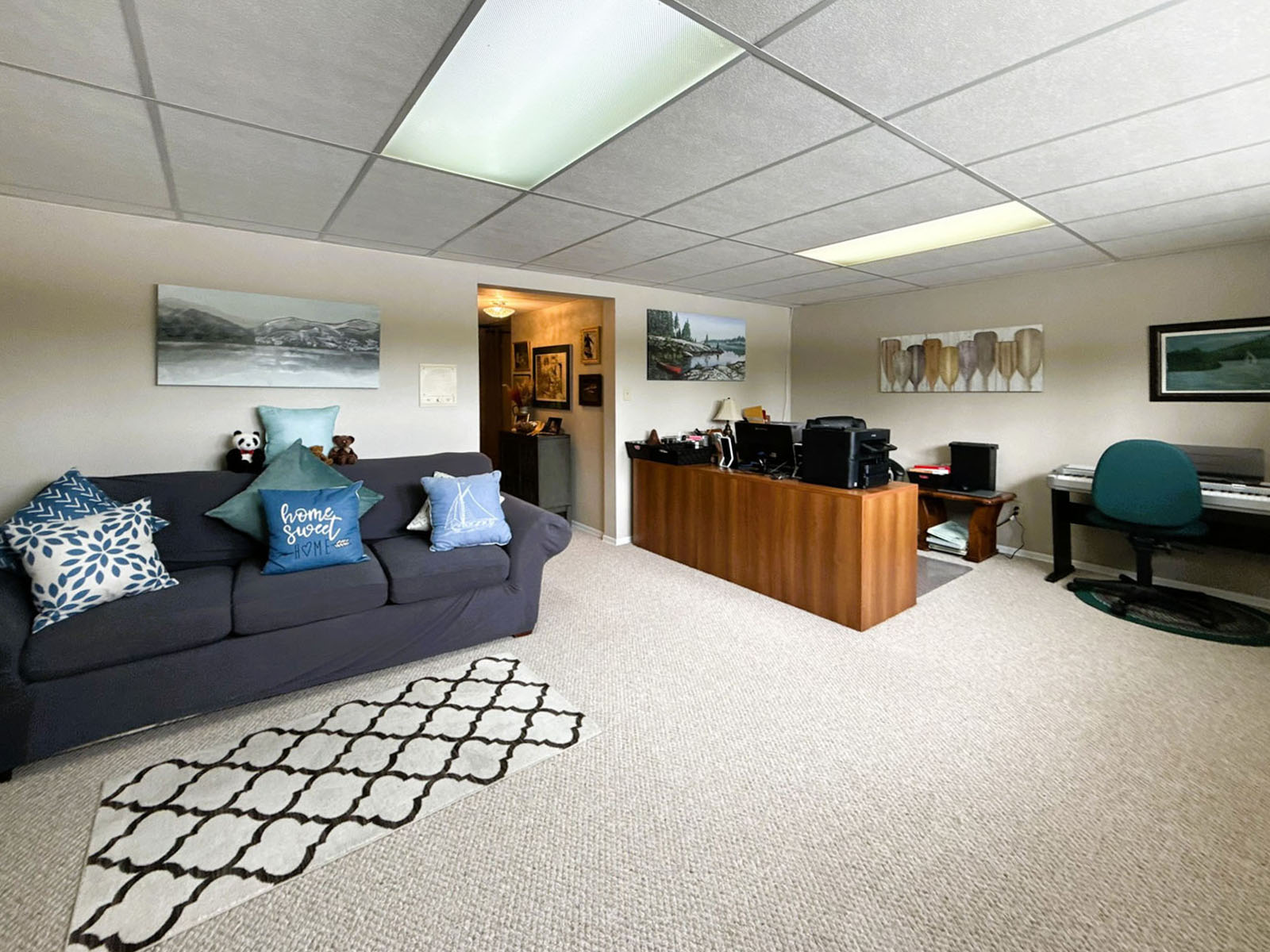 The property features an immaculate rancher offering 2 bedrooms and 2 bathrooms, with a full walk-out basement. Adjacent to the home is a large three-bay carport.