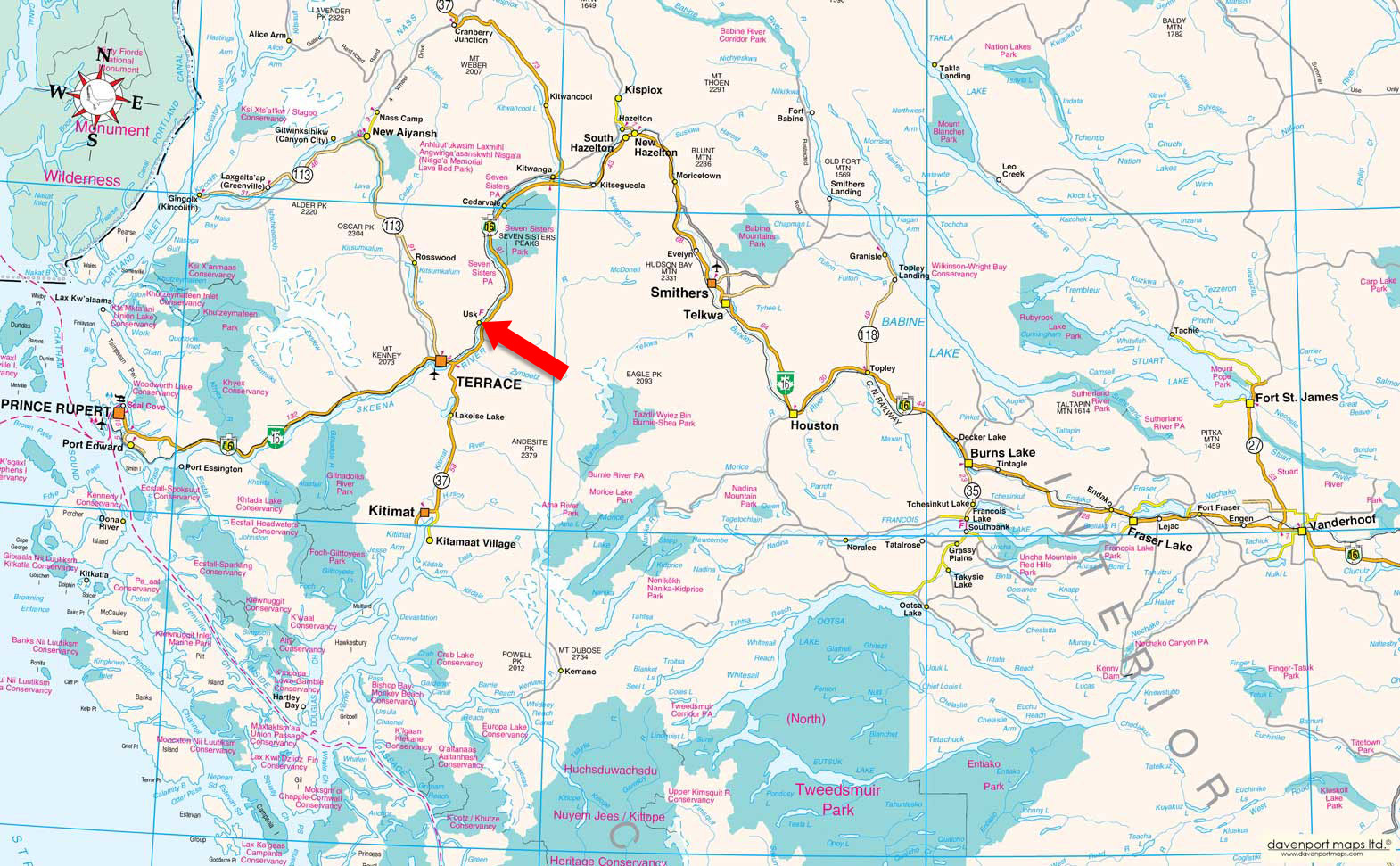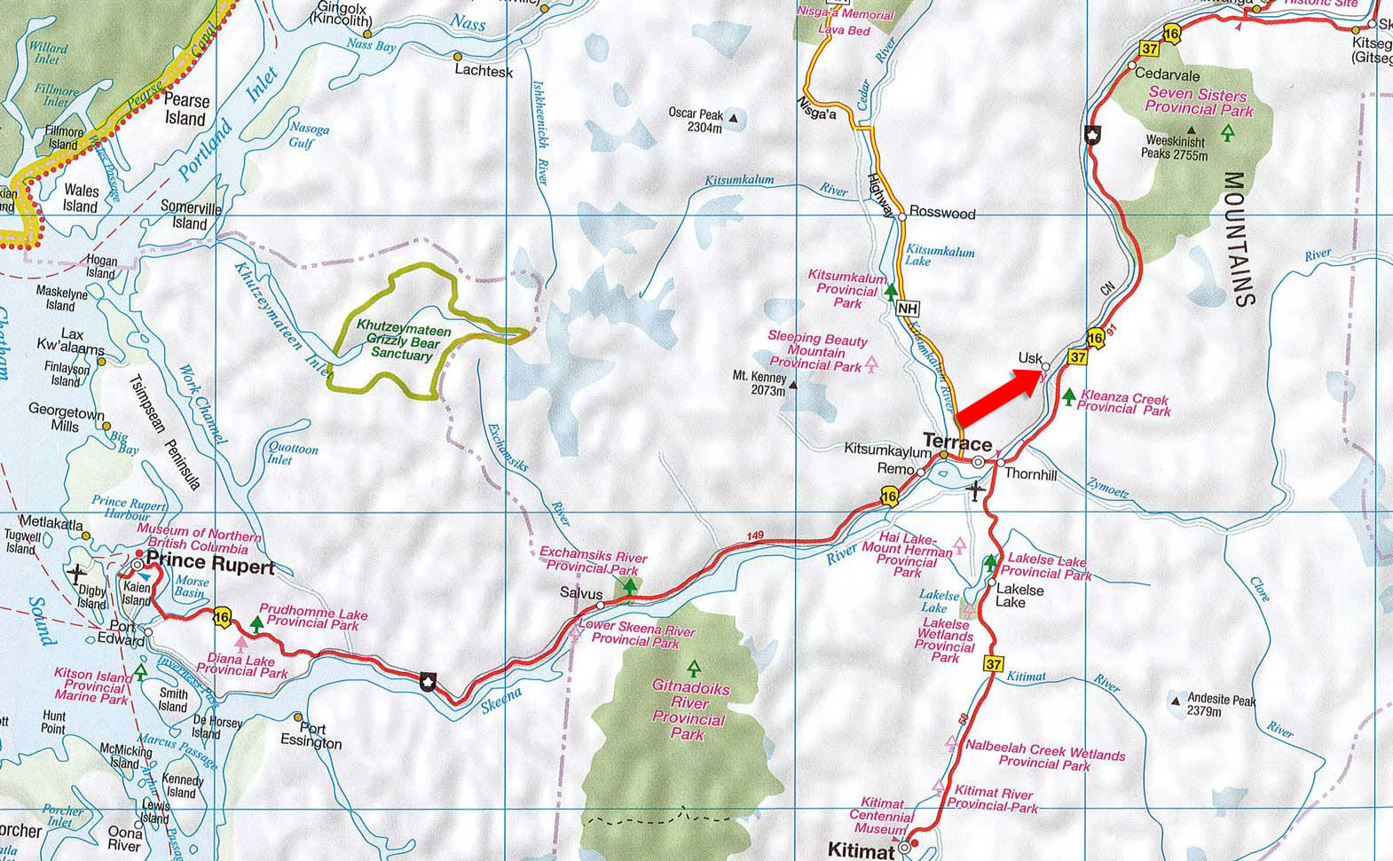 The area around Usk lies within the traditional territory of the Tsimshian First Nations, whose communities have lived along the Skeena River for thousands of years. The river was—and remains—a vital travel corridor and food source, particularly for salmon, which played a central role in culture, trade, and seasonal life. Villages, fishing sites, and trails connected communities throughout the valley long before European contact.