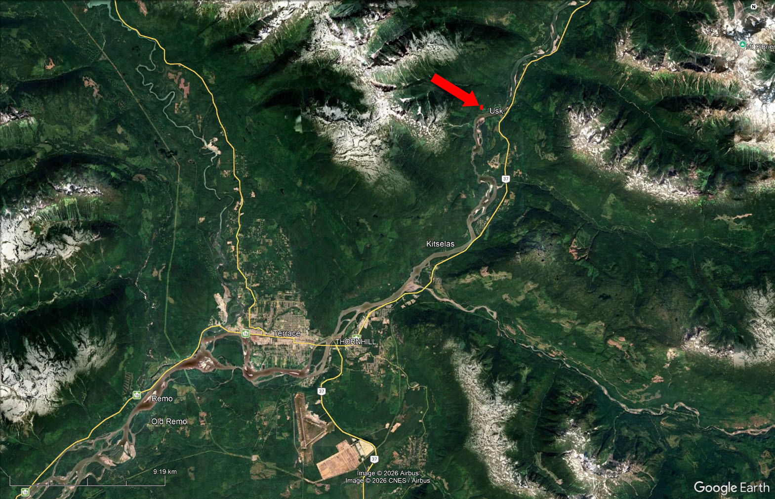 European influence began in the late 1800s with the arrival of traders, missionaries, and prospectors moving through the Skeena corridor. Settlement increased in the early 20th century with the construction of the Grand Trunk Pacific Railway, which opened the region to transportation, logging, and small-scale agriculture. Usk developed as a modest rail-side community serving nearby farms and forestry operations, with its location along the Skeena making it a natural stopping point.