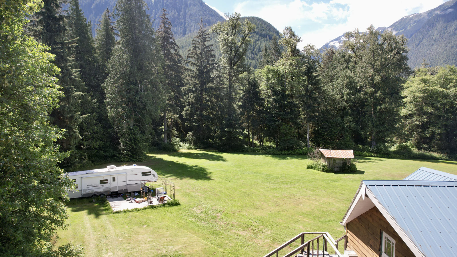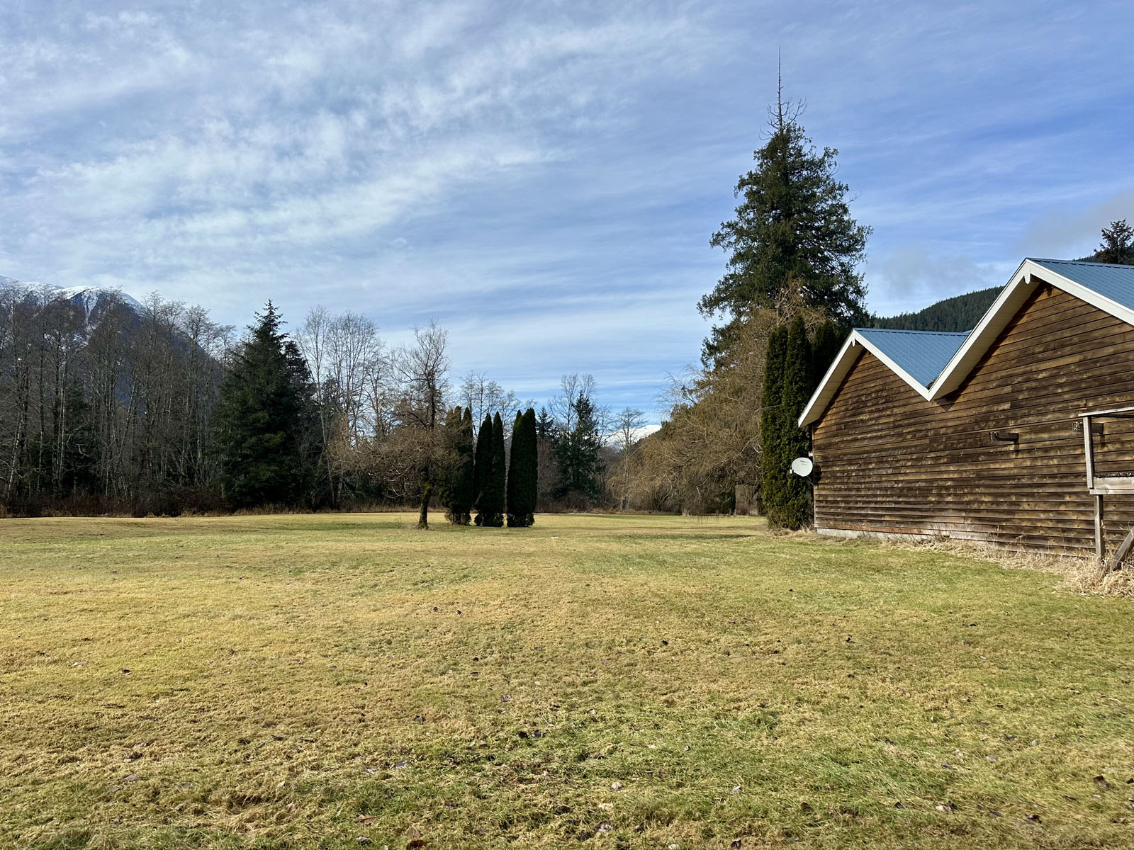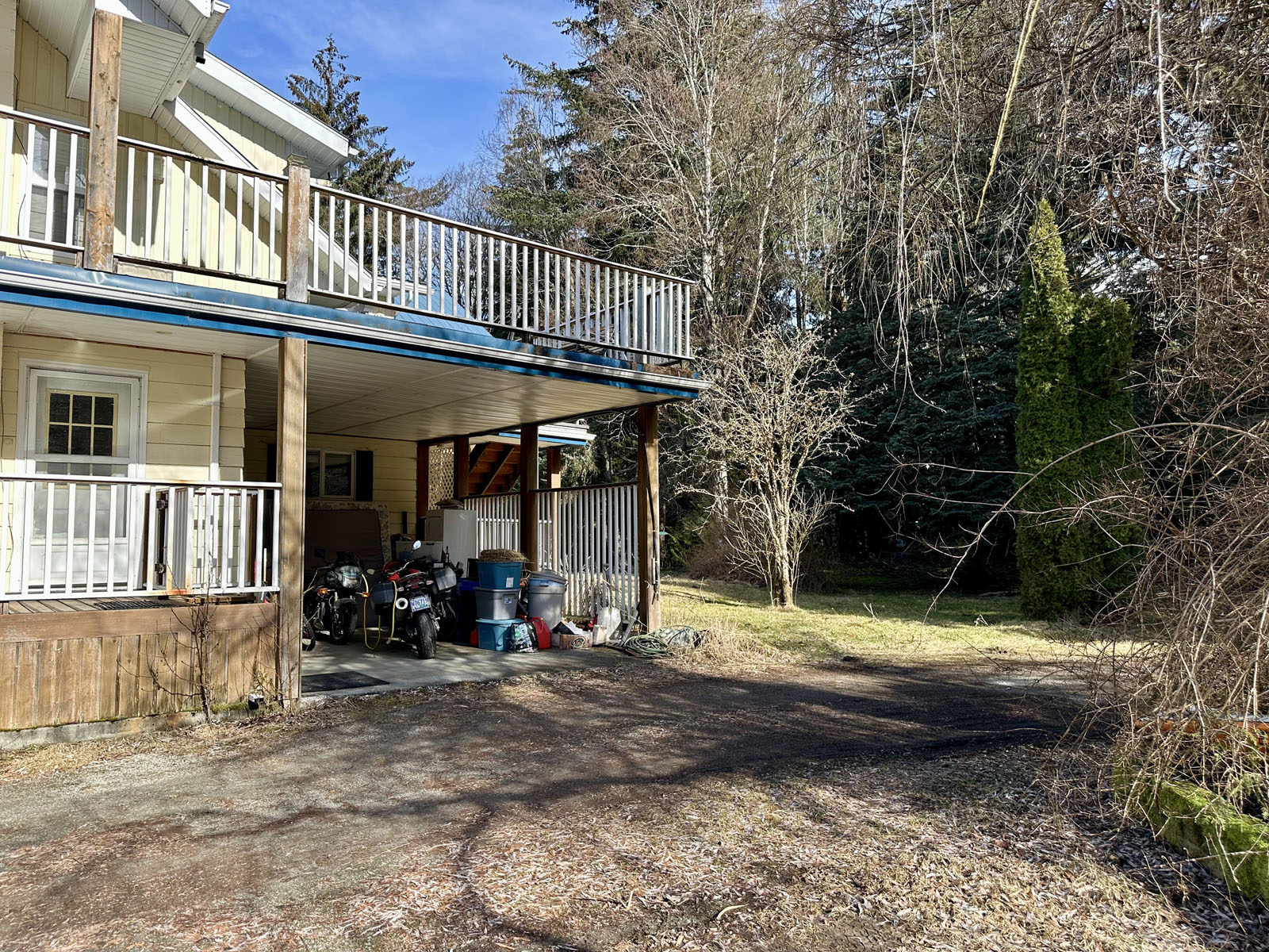 The surrounding land is a nature lover’s dream, with old-growth coastal trees, fertile soil ideal for gardens or fruit trees, and a fully fenced area. A salmon-spawning creek meanders through the back of the property, enhancing the picturesque setting.