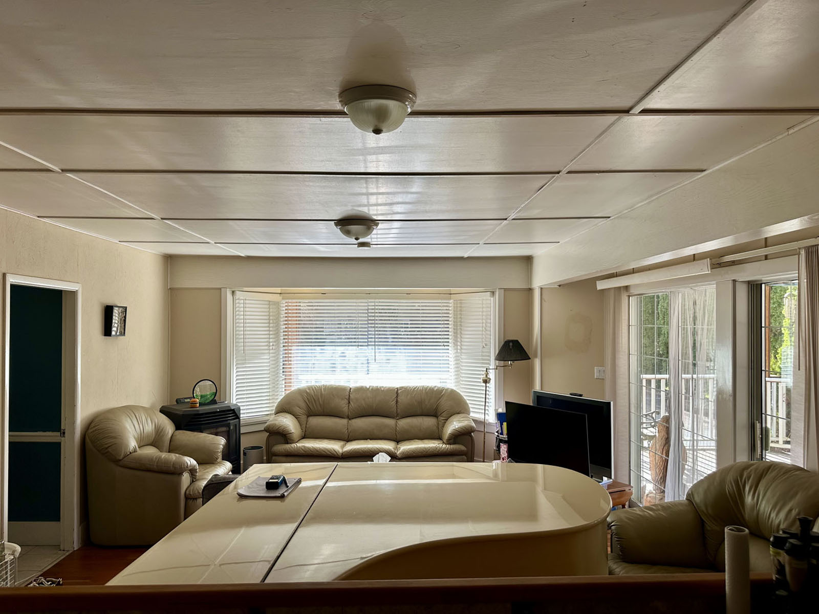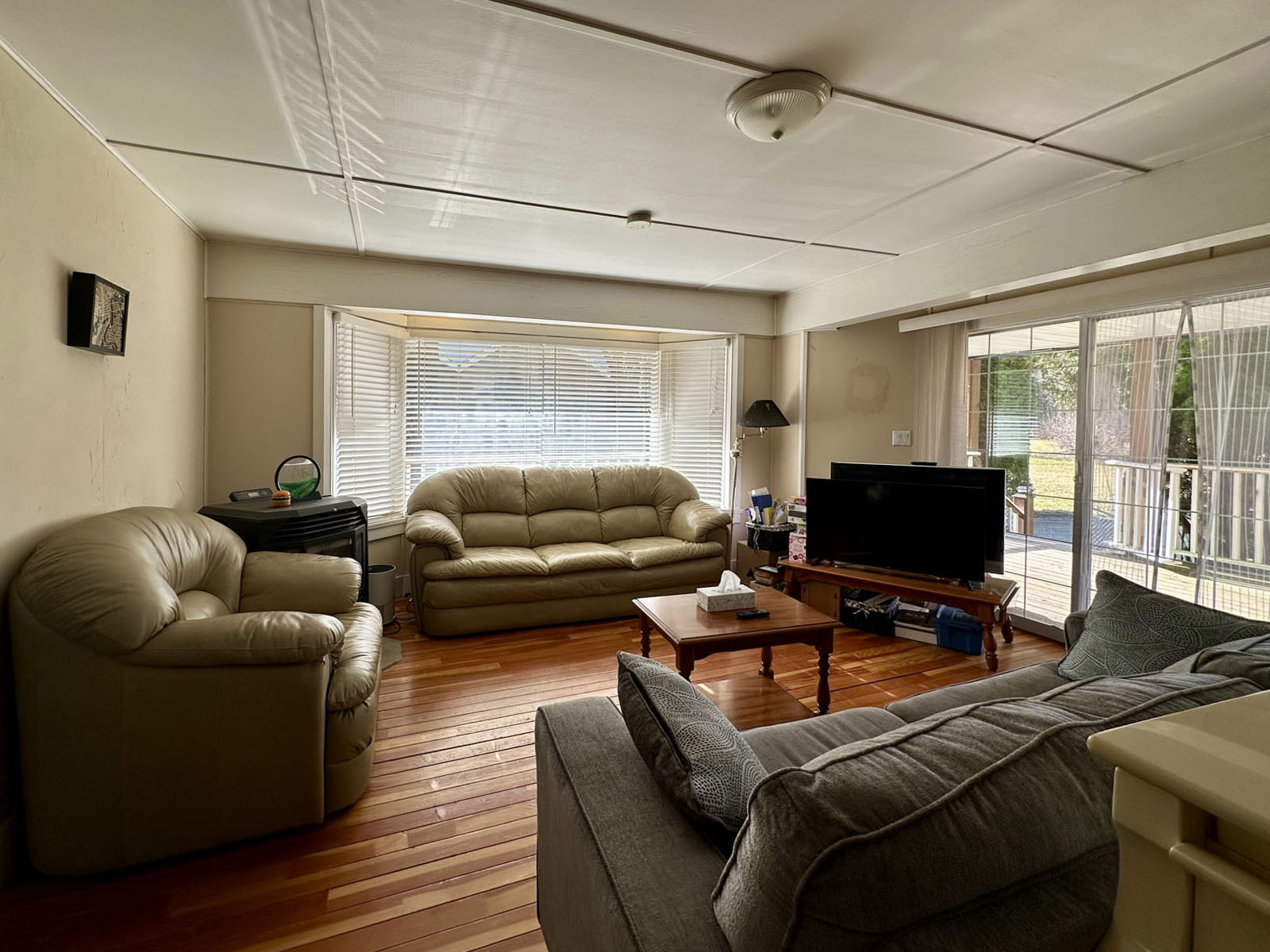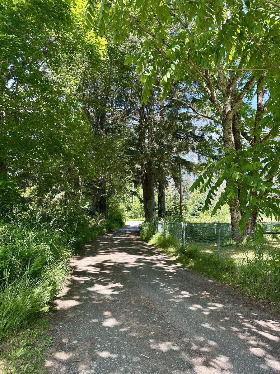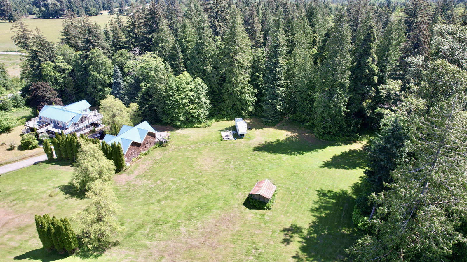 The surrounding land is a nature lover’s dream, with old-growth coastal trees, fertile soil ideal for gardens or fruit trees, and a fully fenced area. A salmon-spawning creek meanders through the back of the property, enhancing the picturesque setting.
