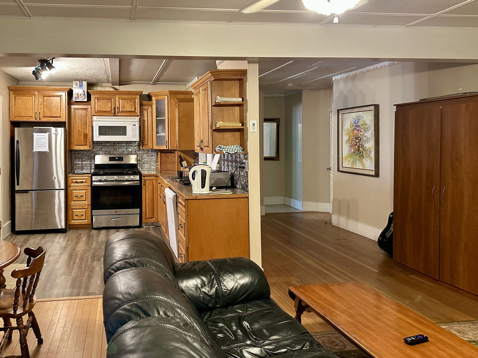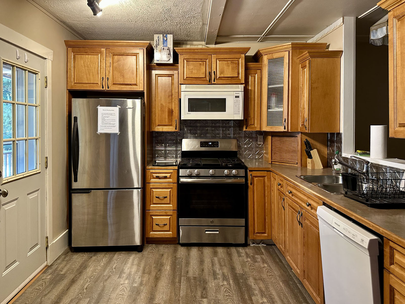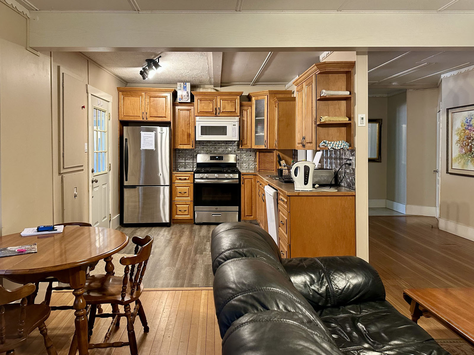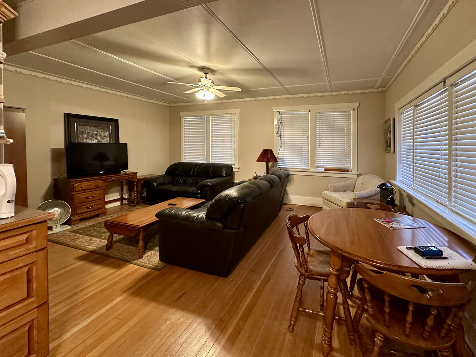 The large 2,592 sq. ft. garage has two levels and provides ample covered parking while offering potential for an additional rental unit, workshop, or studio space. There is also a RV parking space with septic, water and a paved porch. The property is being sold furnished, making it a turnkey opportunity for investors or those looking for a move-in-ready, multi-family home.
