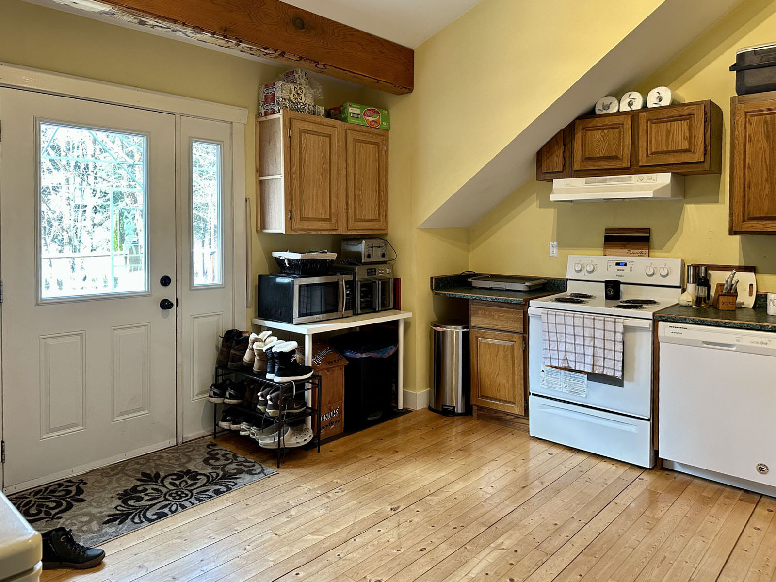 This stunning 3,893 sq. ft. home on 8.09 acres has been fully remodeled into four self-contained suites, offering a fantastic income-generating opportunity. Two suites are located on the upper level, and two are on the lower level, each thoughtfully designed with modern comforts while maintaining the home’s character. The spacious interiors feature high ceilings, large windows that bring in natural light, and beautiful hardwood and pine flooring throughout. Each suite is fully equipped with stainless steel appliances, well-appointed kitchens, and stylish bathrooms. Electric heat provides efficient and consistent warmth, making each unit comfortable year-round. A shared laundry area adds convenience for tenants, while the expansive decks provide breathtaking views of the surrounding landscape.